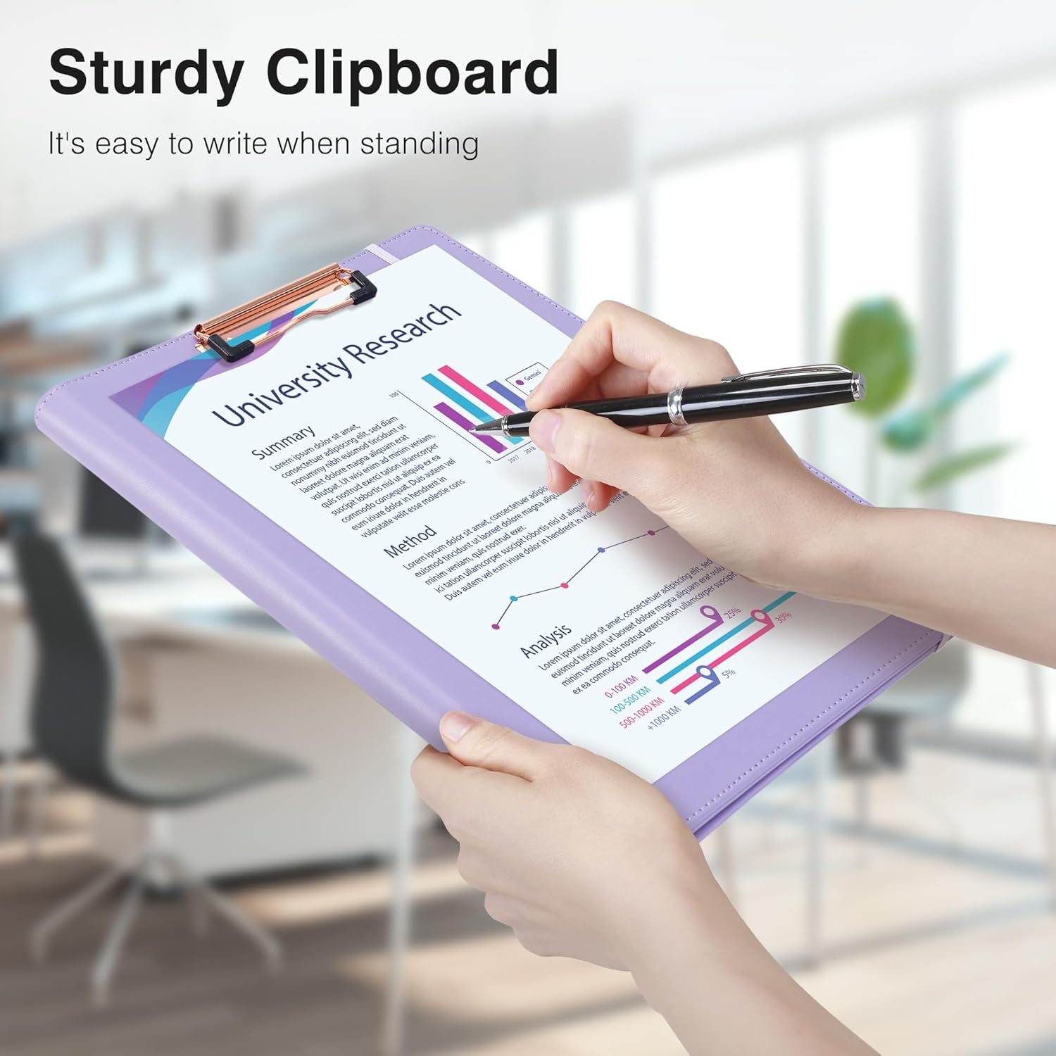 Ospelelf Foldable Leather Clipboard Folio with Notepad 8.5 x 11, Purple Business Padfolio for Women Portfolio Organizer
