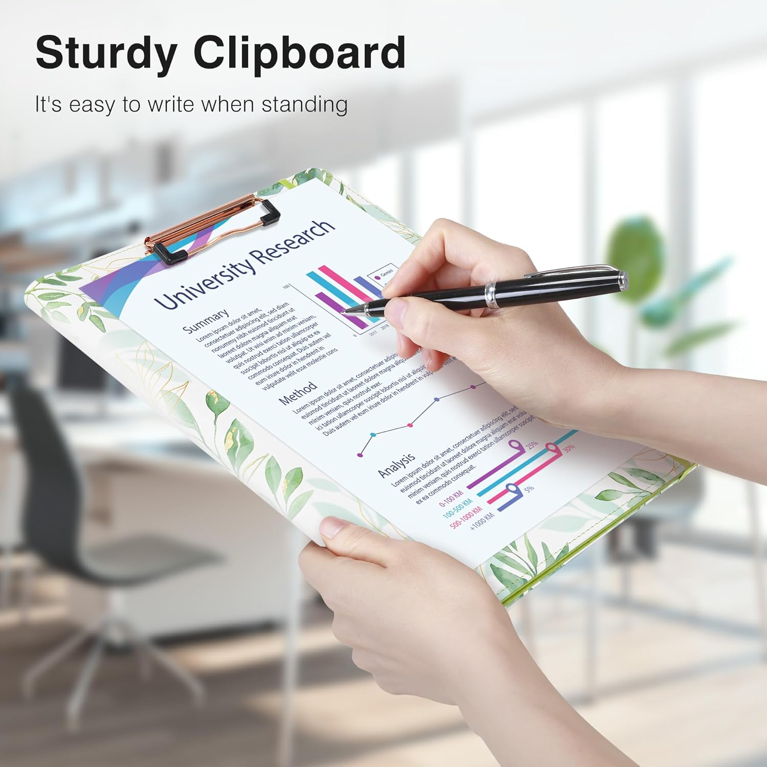 - 【Premium Material】 It is made of high-quality PU leather with reinforced stitching, making it far more durable than cardboard alternatives. The leather cover is easy to clean, and the rose gold metal clip securely holds 80–100 sheets even when writing while standing.