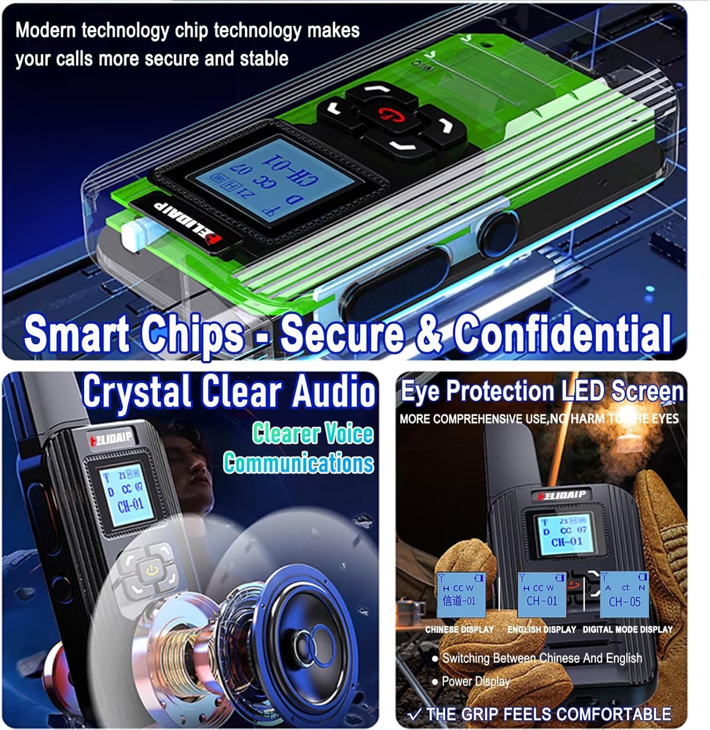 - Digital & Analog Compatible:ELIDAIP F711 small walkie talkie is compatible with Digital and Analog modes,including 32 channels * 2 Zone (Digital) or 2 zone*32 channels(Analog).The size is only 4.25 x 1.29 x 0.86 inches and weighs only 2.2 oz,making it lightweight and portable.External speaker function, or connected to soft silicone earphones, with a 360 degree head rotation and ergonomic G-shaped ear hook design,made of softer and more comfortable materials, suitable for all day wear and use