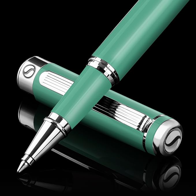 Scriveiner Mint Green Rollerball Pen - Stunning Luxury Pen With Chrome Finish, Schmidt Ink Refill, Best Roller Ball Gift Set for Men & Women, Professional, Executive Office, Nice Pens
