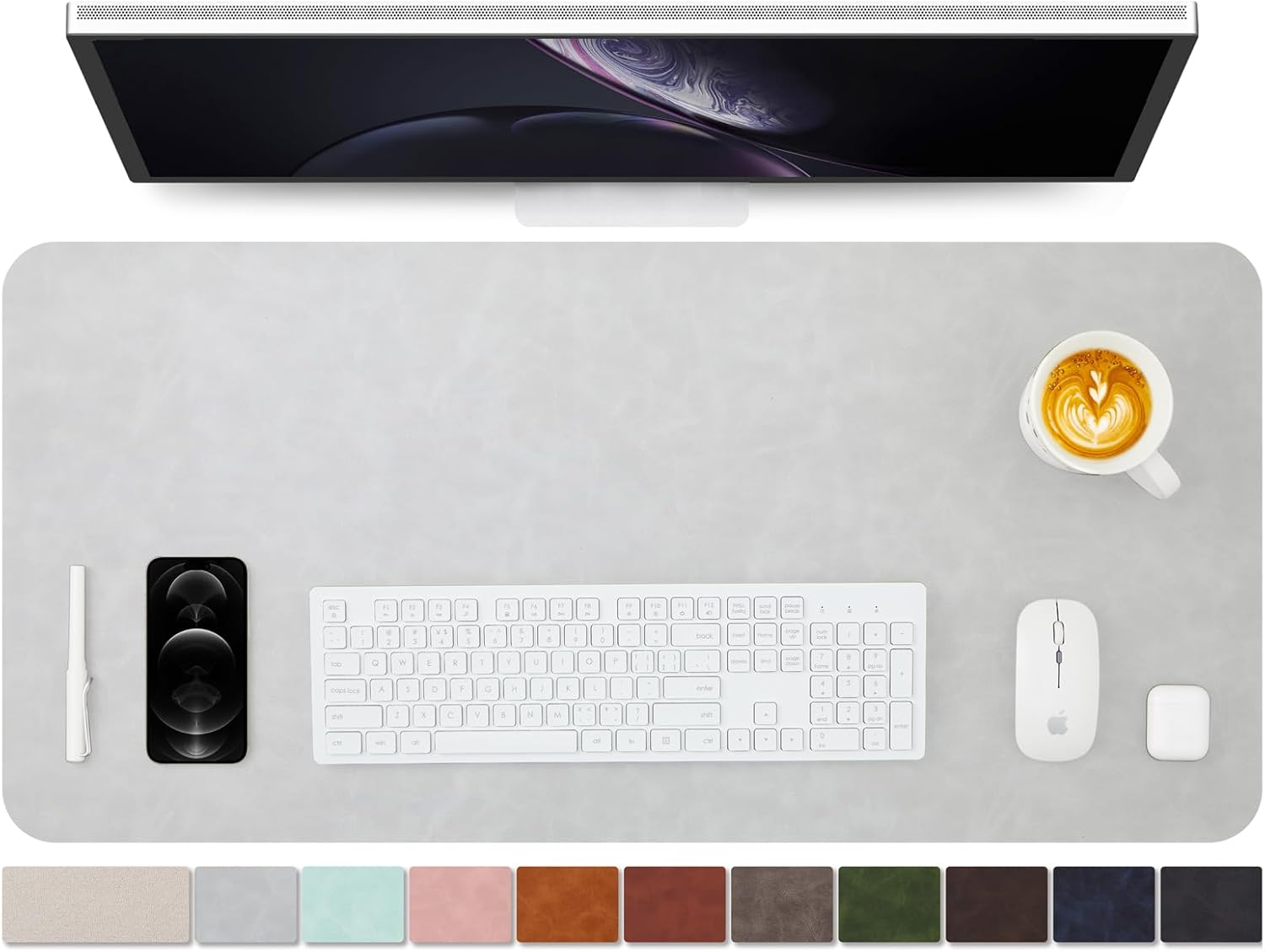 Distressed Leather Desk Mat - Non-Slip PU Desk Pad for Office and Home - Desk Organization and Accessories - Ideal for Large Mouse Pad and Desk Mats on Top of Desks(Ash Gray,36"x 17")