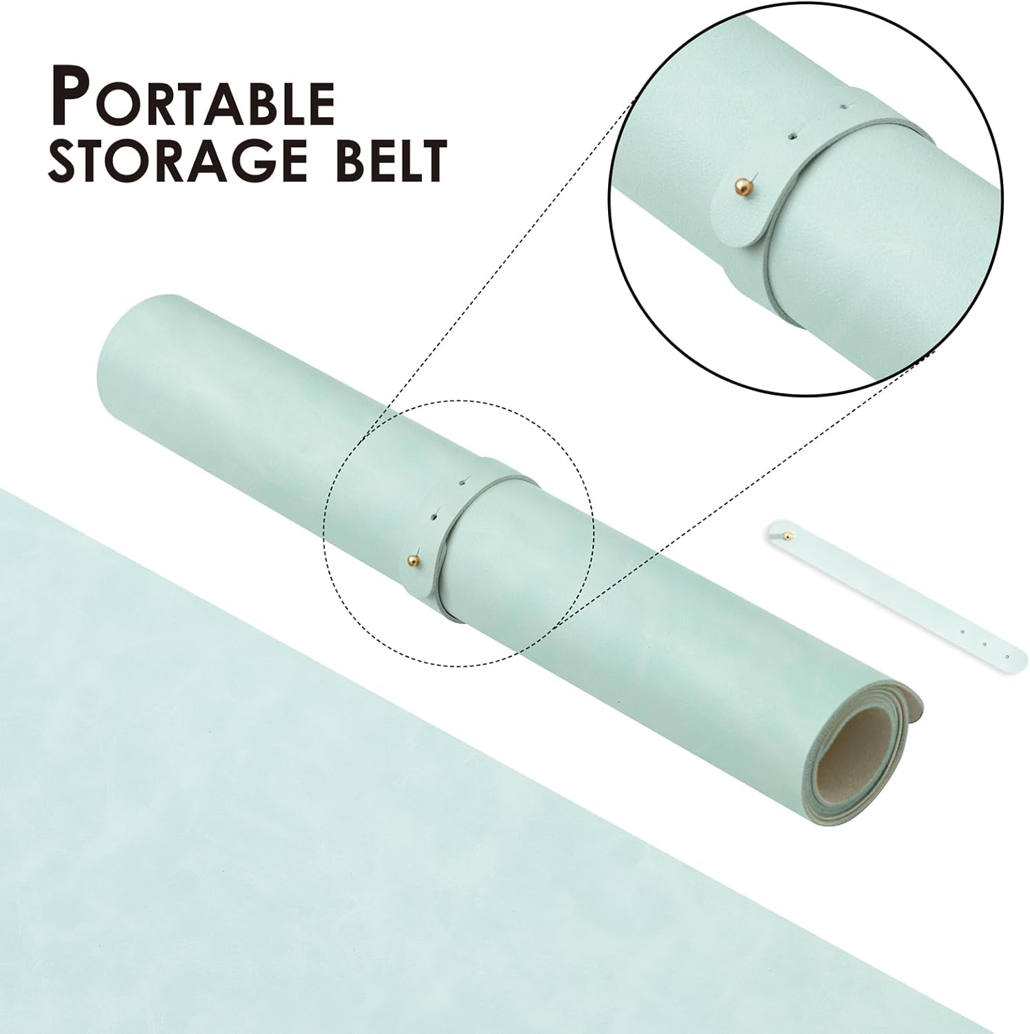 Distressed Leather Desk Mat - Non-Slip PU Desk Pad for Office and Home - Desk Organization and Accessories - Ideal for Large Mouse Pad and Desk Mats on Top of Desks(Mint Green,27.6"x 13.8")