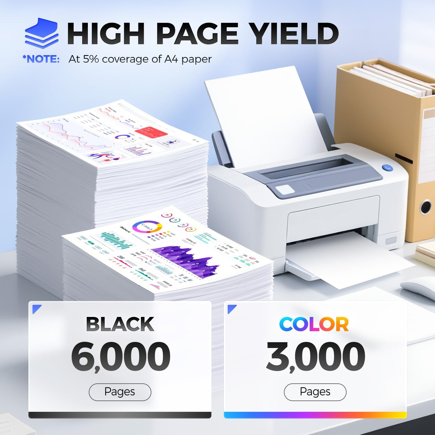 - High Page Yield: Up to 6,000 pages per black Toner Cartridge,up to 3,000 pages per color (at 5% coverage of A4 Paper),High Yield Version XC2130 XC2132 Toner Cartridge.