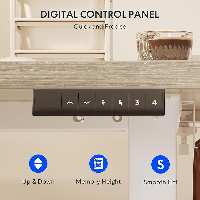- 4 MEMORY BUTTONS: Easily switch between sitting and standing positions with our 6-button digital controller that features 4 programmable memory presets. The motorized height-adjustable system adjusts smoothly from 28.1β to 45.7β, and the motor runs quietly at less than 50 dB.