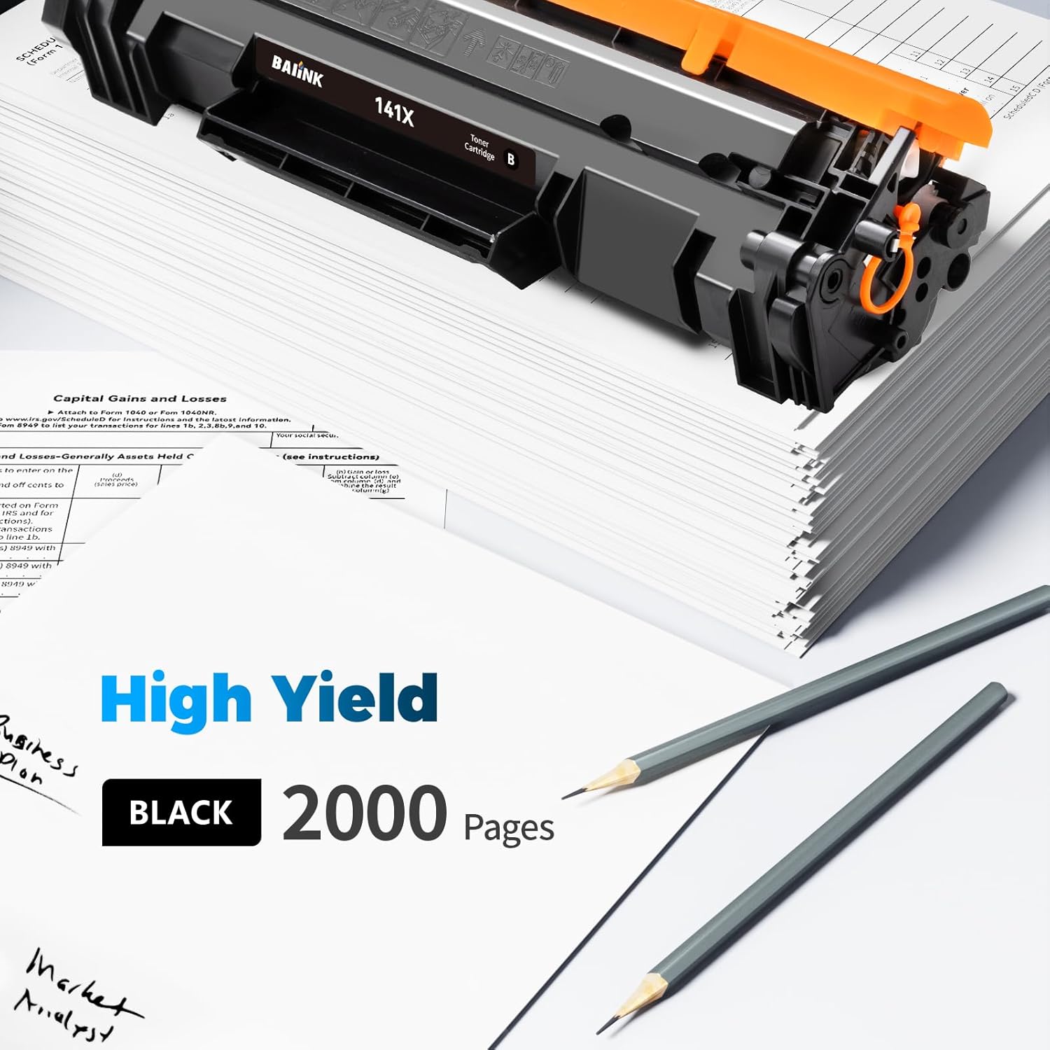 - High Page Yield: Up to 2,000 Pages for 141X black toner cartridge (Letter A4, at 5% coverage)