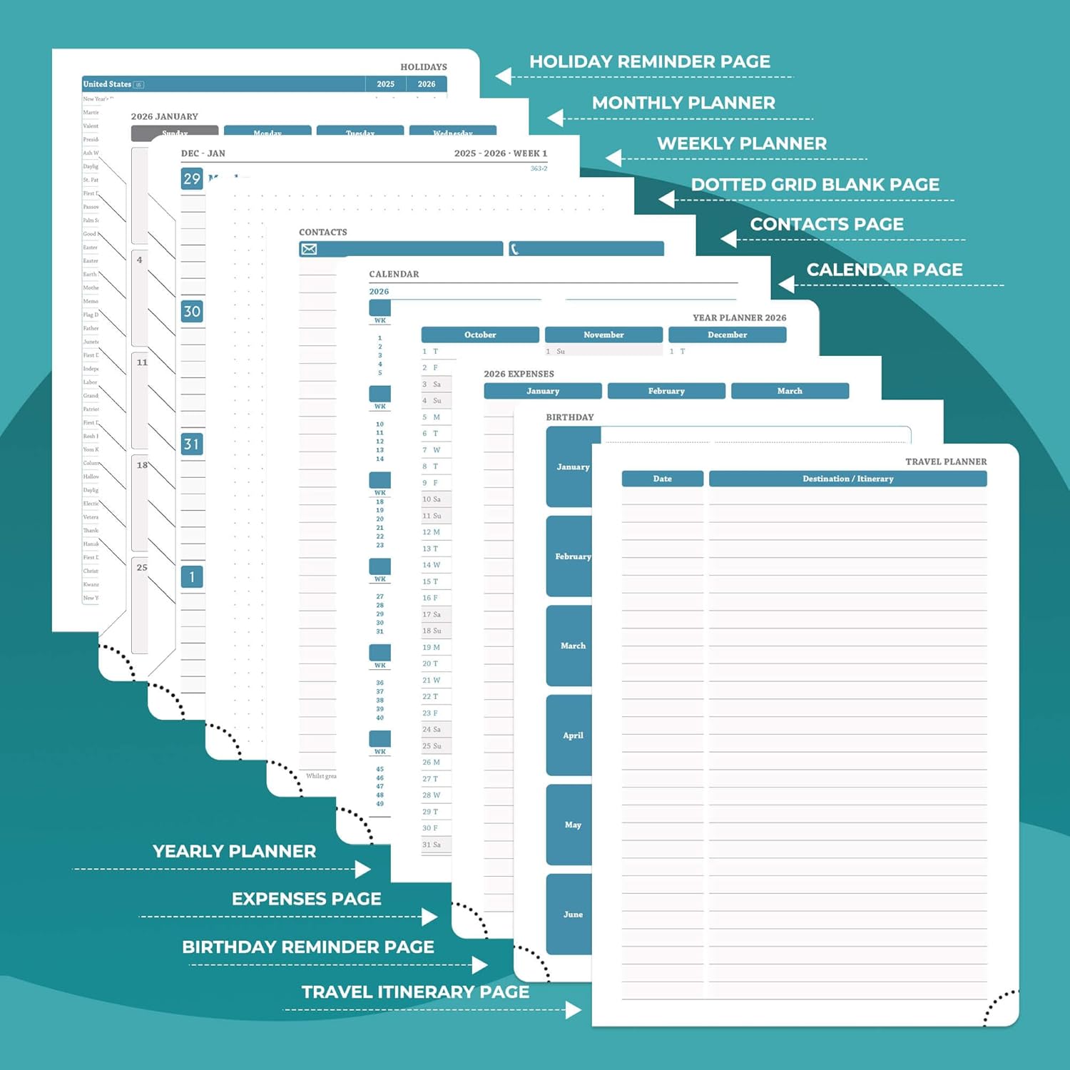 - Universal Design Planner: Suitable for a variety of people and scenarios. Professionals manage project progress, meeting arrangements and goals; student planner 2026 courses, exams and extracurricular activities; home users arrange travel, activitie