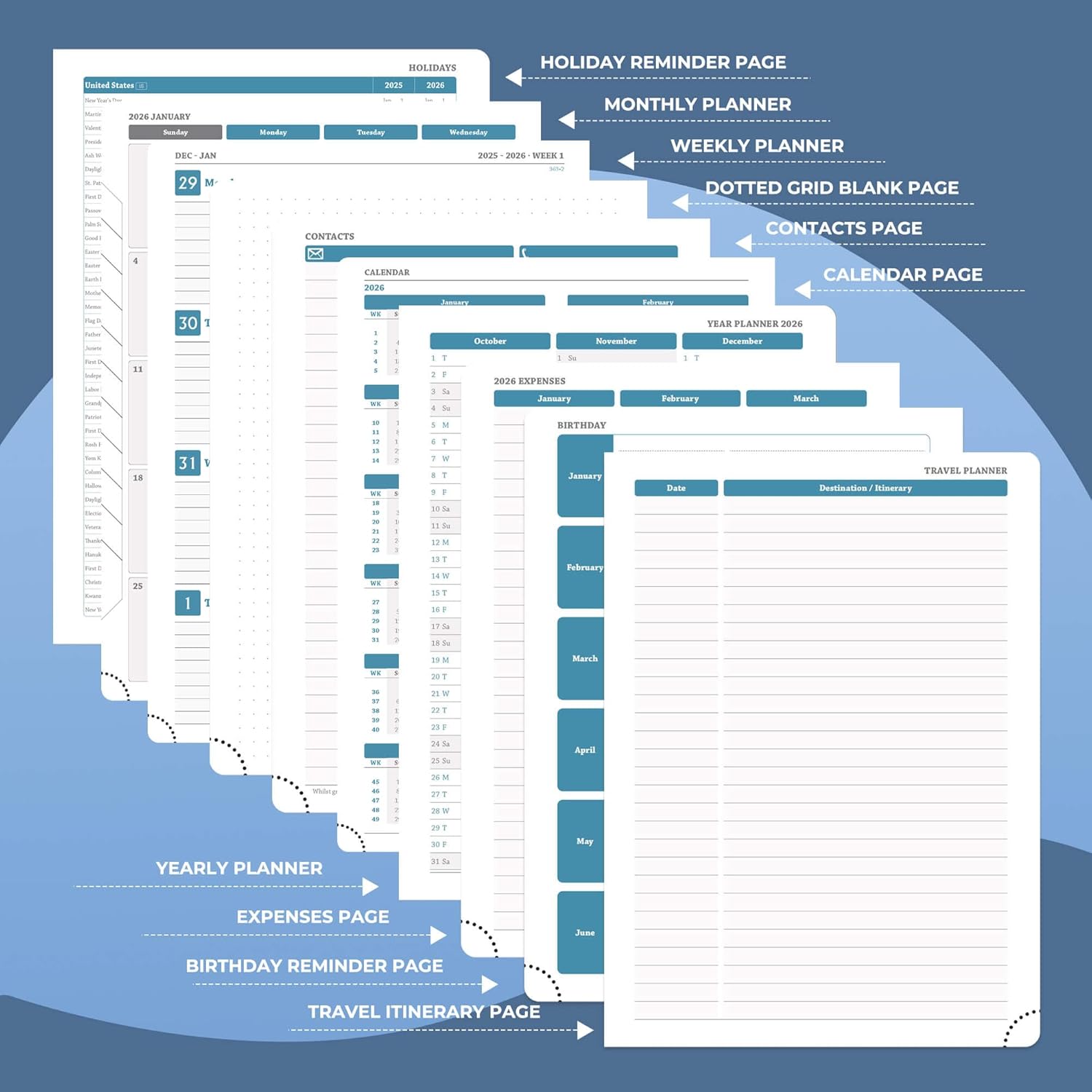- Universal Design Planner: Suitable for a variety of people and scenarios. Professionals manage project progress, meeting arrangements and goals; student planner 2026 courses, exams and extracurricular activities; home users arrange travel, activitie