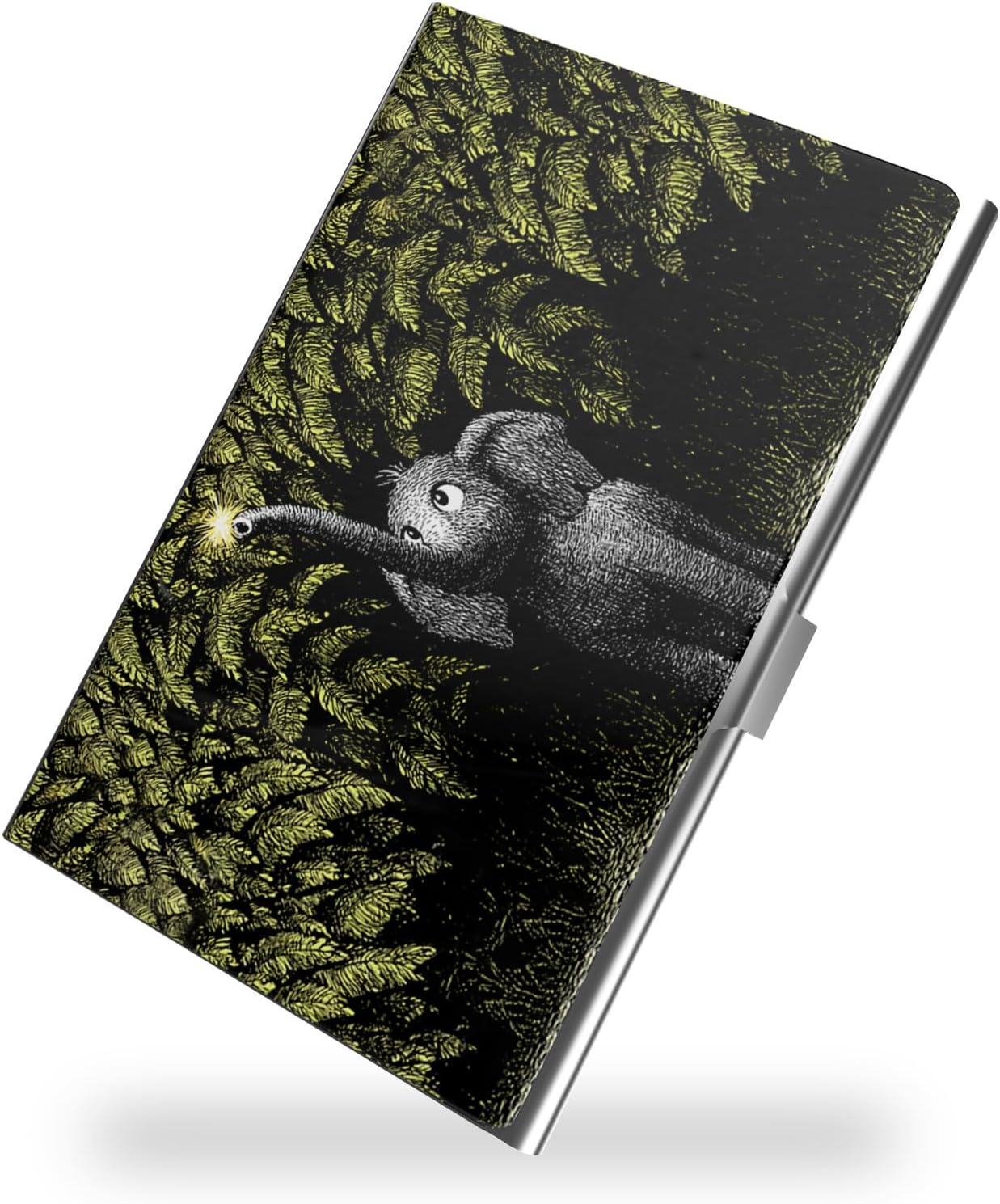 Business Card Metal Slim Organizer, Professional Stainless Steel Square Pocket Wallet for Office Workers, Compact and Portable for Pockets (Elephant A)
