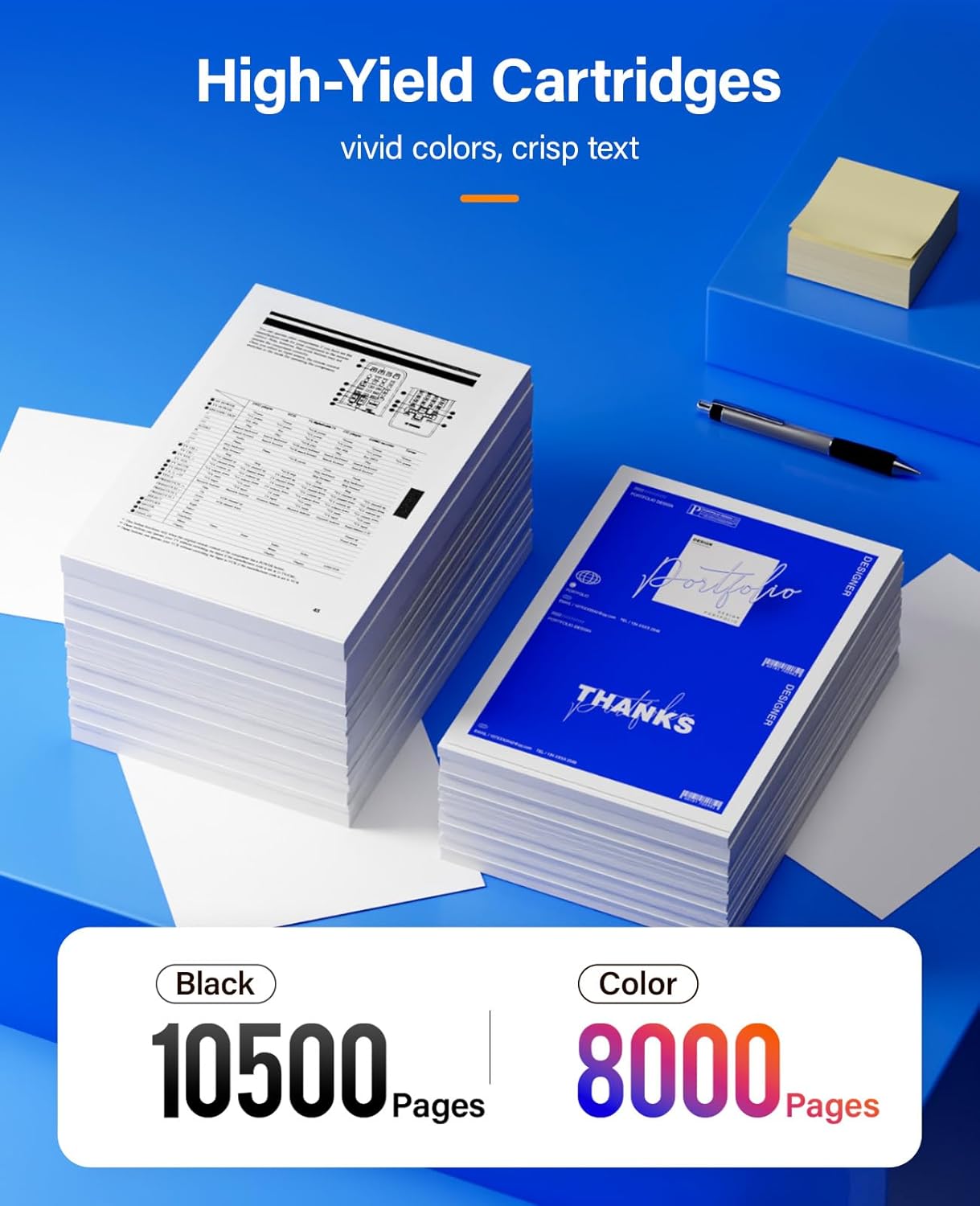- High Page Yield: 10,500 pages for Black and 8,000 pages for Color toner cartridge (Letter/A4, at 5% coverage)