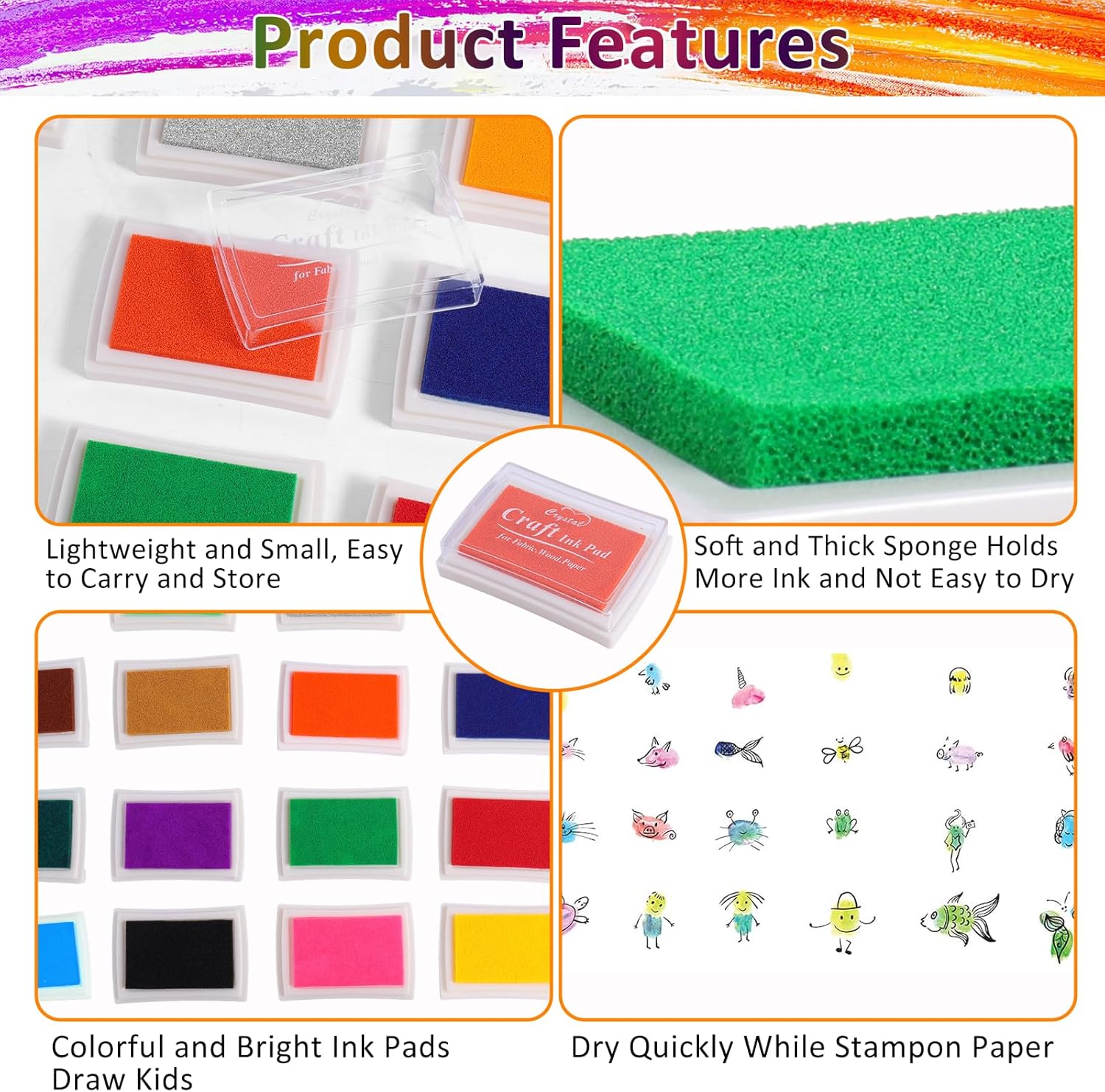 - 【Widely Used】The ink pads set provides a variety of ways to play, fingerprint painting, stamp painting, etc. can be used, suitable for DIY creation on paper, wood, scrapbooks, cards and other surfaces. The ink pad is a great gift for Kids