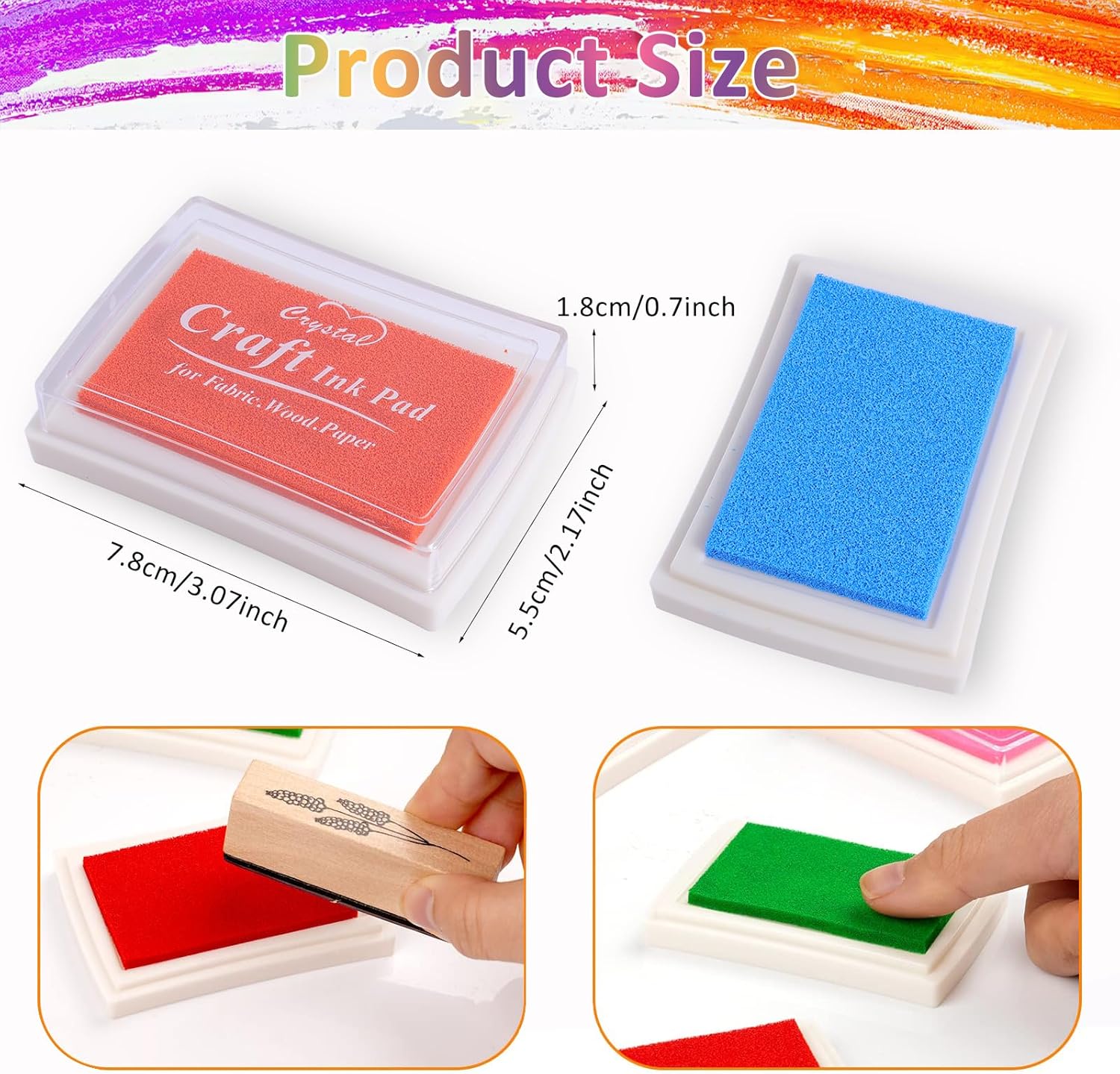- 【Small and Portable】Ink stamps pad can be reused many times, and each color ink pad measures approx. 7.8 x 5.5 x 1.8 cm/3.07 x 2.17 x 0.7 inches. Lightweight and small, easy to carry and store. All colors can be stacked one by one to avoid confusion and keep everything neat and tidy