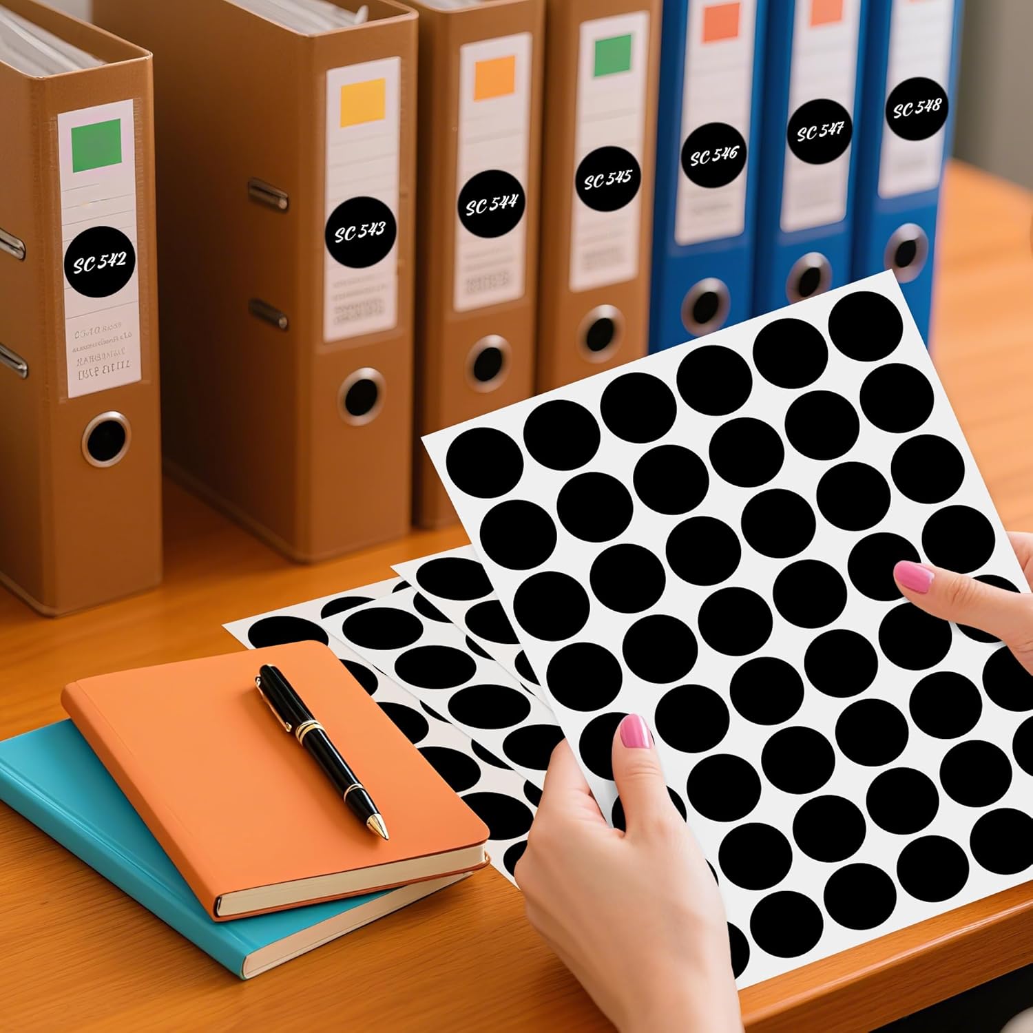 - Cardboard package: 15 sheets 1 inch black dot stickers, total 720 pcs round color-code circle label, package size 266mm*185mm
