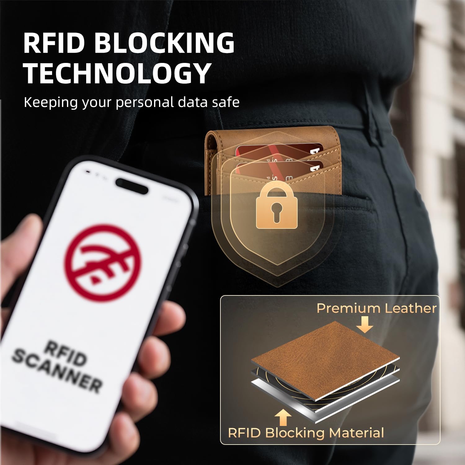 • RFID Blocking - Our wallets are equipped with advanced RFID SECURE Technology, a unique metal composite, engineered specifically to block 13.56 MHz or higher RFID signals and protect the valuable information stored on RFID chips from unauthorized scans. License and ID cards will be protected effectively. Blocking the 13.56 MHz band and protect against data theft by RFID scanners