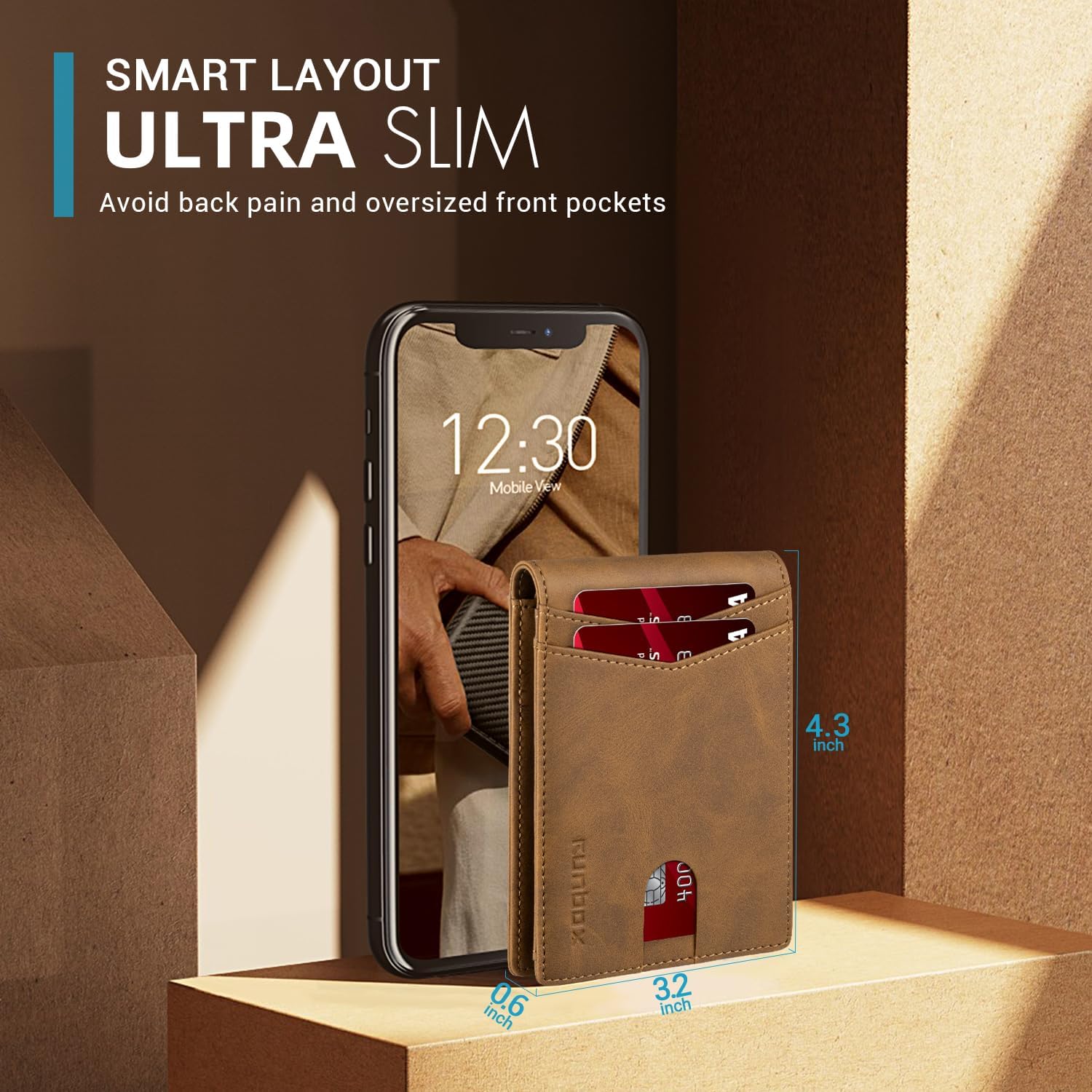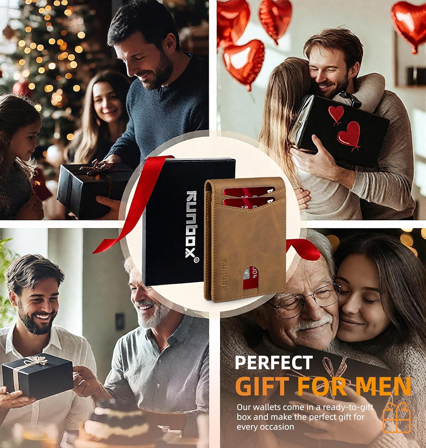 RUNBOX Wallet for Men Slim Rfid Leather 2 ID Window With Gift Box