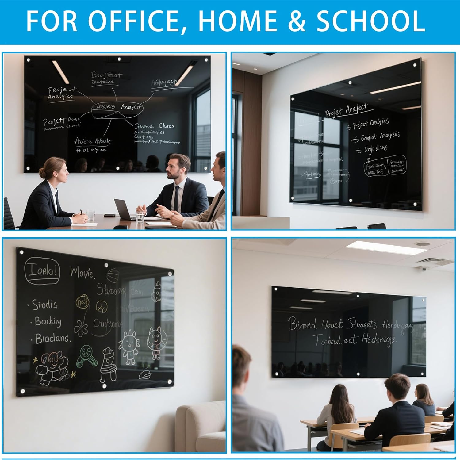 - Modern Frameless Design: Frameless glass black board enhance your space and blend perfectly with any modern decor. You get more writing space—no more hard-to-reach corners! making it a fashionable focal point for your home, office or classroom