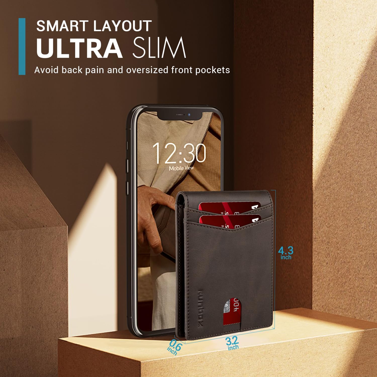 RUNBOX Wallet for Men Slim Rfid Leather 2 ID Window With Gift Box