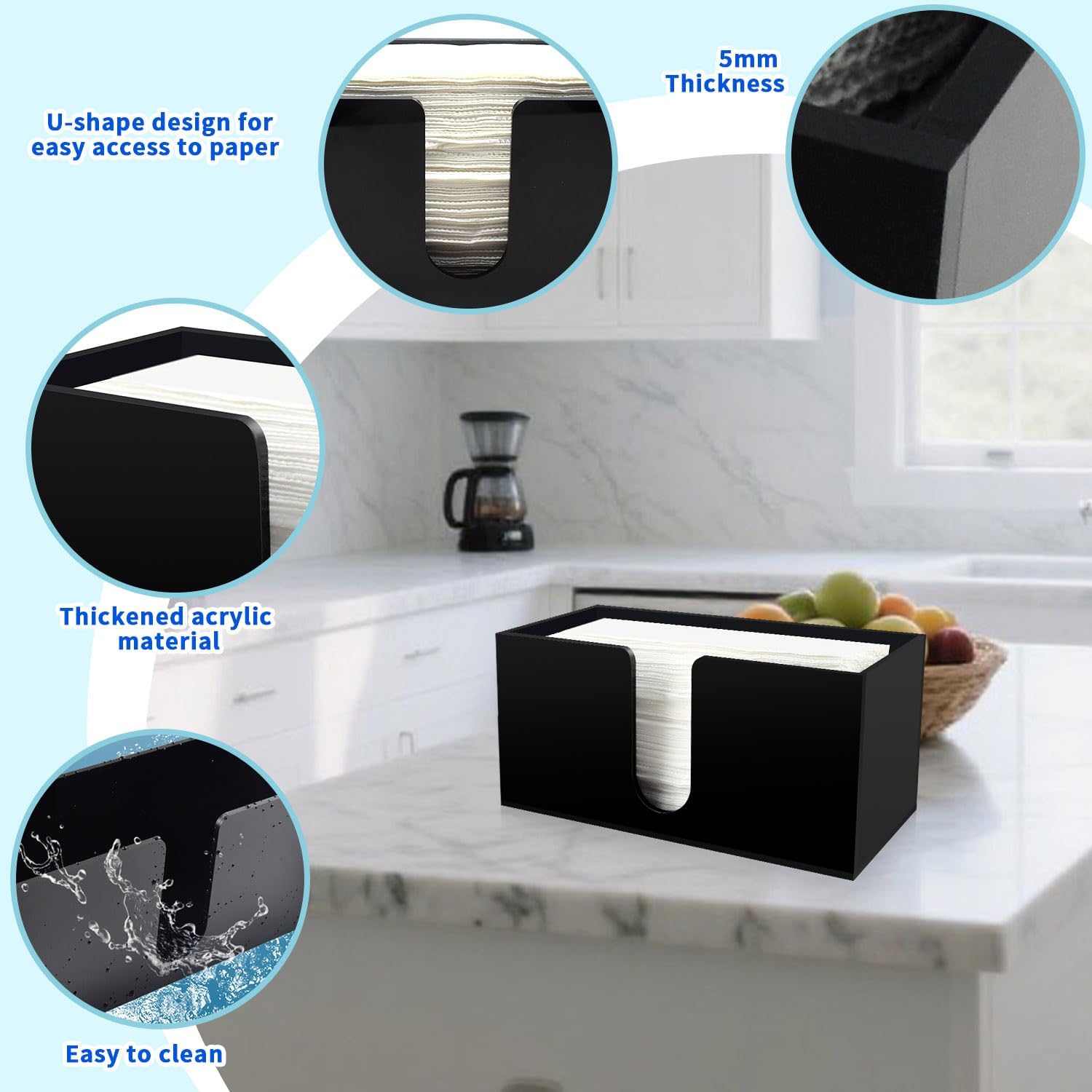 - 2-Pack Value with Modern Minimalism:Bundle of 2 black acrylic paper towel holders for bathroom & kitchen counters. Streamlined rectangular design blends with any decor from farmhouse to industrial, organizing multifold towels while complementing marble/wooden surfaces.