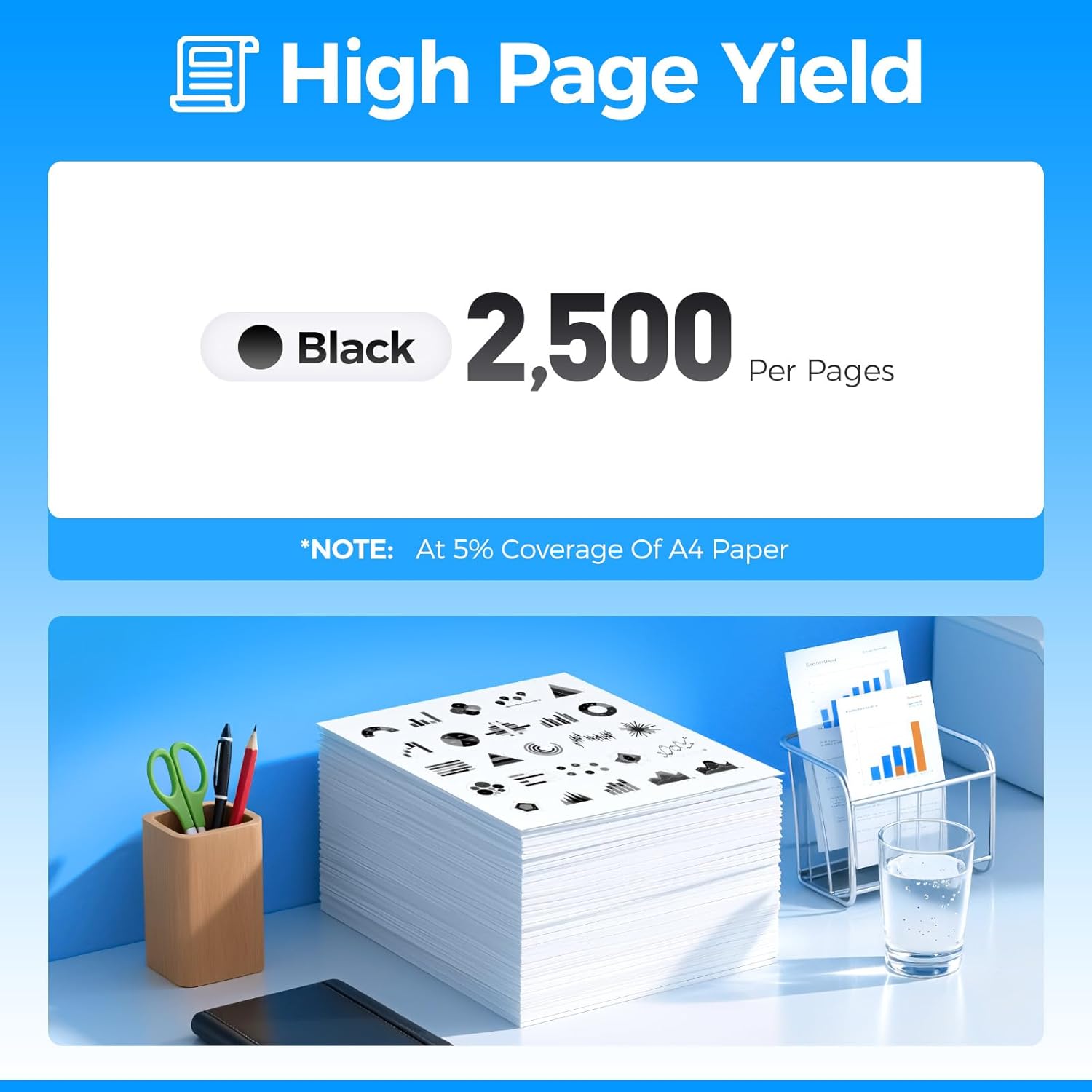 - Yield & Version: 2,500 pages per MLT-D103L Black Toner Cartridge (at 5% Coverage), High Yield Version MLT-D103L toner cartridges.