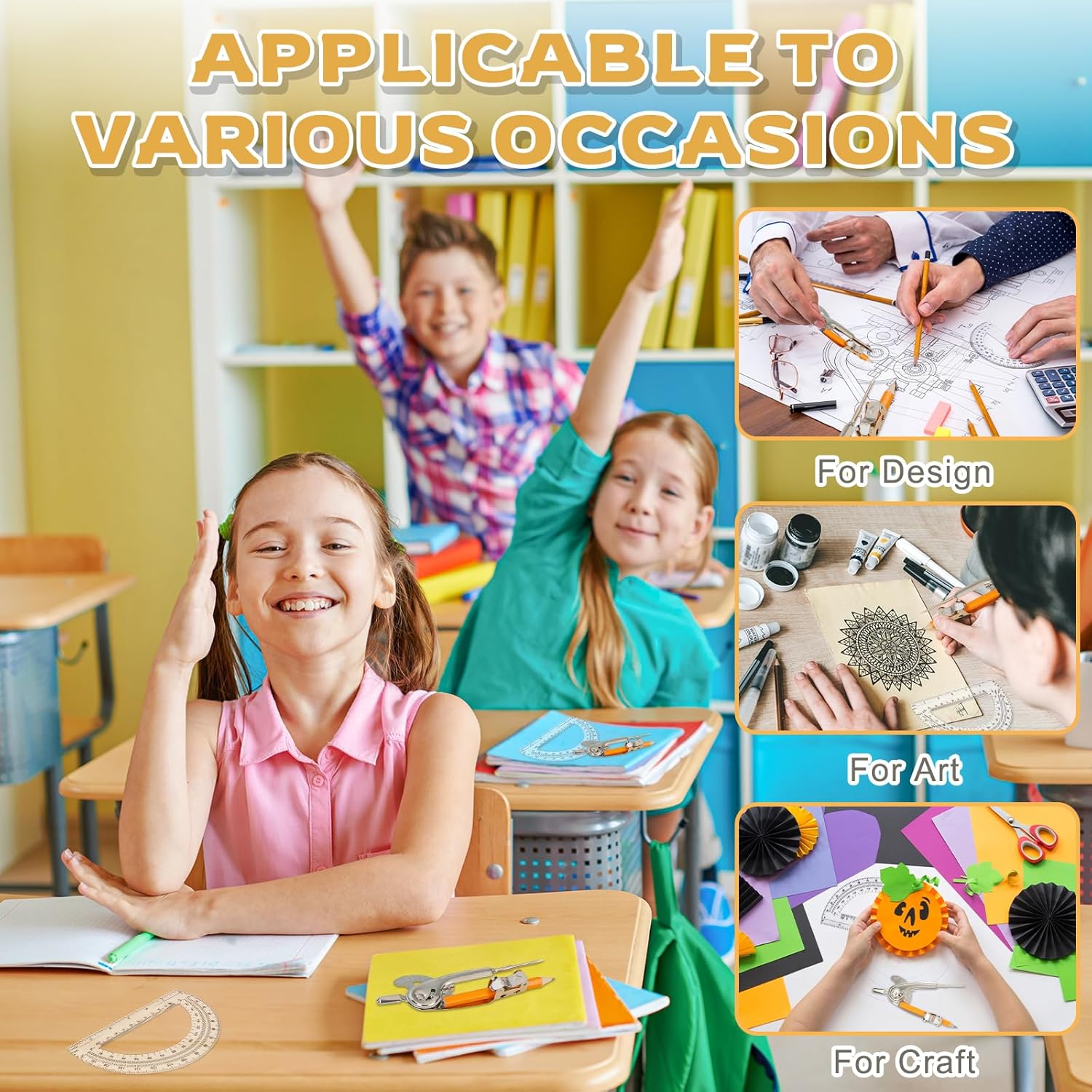- Appropriate Size: each metal compass is 5.1 inches long and can draw a circle with a diameter of up to 11 inches, or various circles can be drawn as needed; The plastic protractor has a diameter of 6 inches and a range of 0-180 degrees; These math compass and protractor set are ideal for school projects, mathematical geometry, and artistic architectural drawing, helping you quickly complete your work