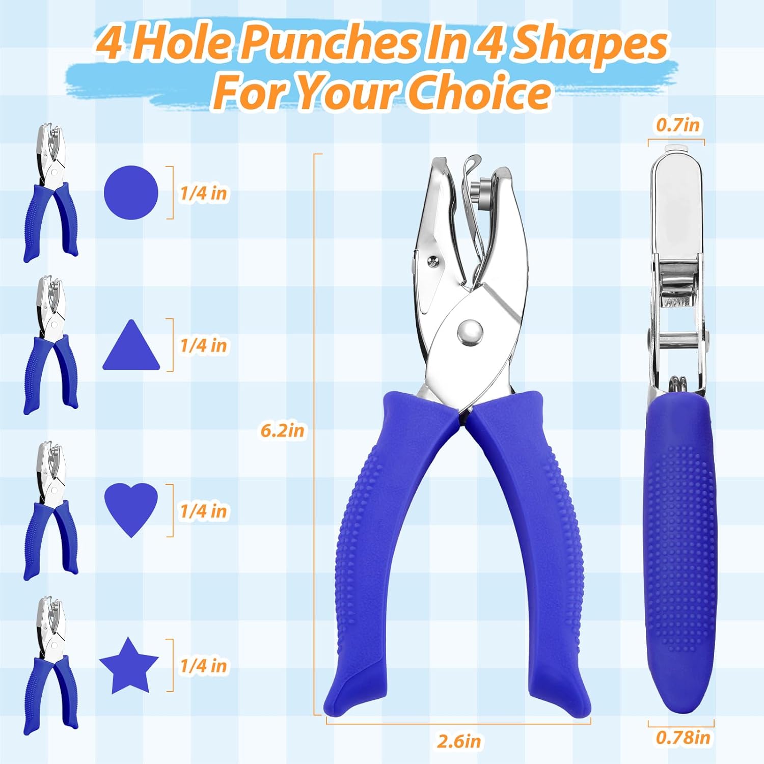 - 🎯 【4 SHAPES FOR ENDLESS CREATIVITY】 Punch perfect 1/4" holes in circle, heart, star, and triangle shapes! This complete set sparks imagination for scrapbooks, greeting cards, classroom projects, and binder organization – no more boring round holes!