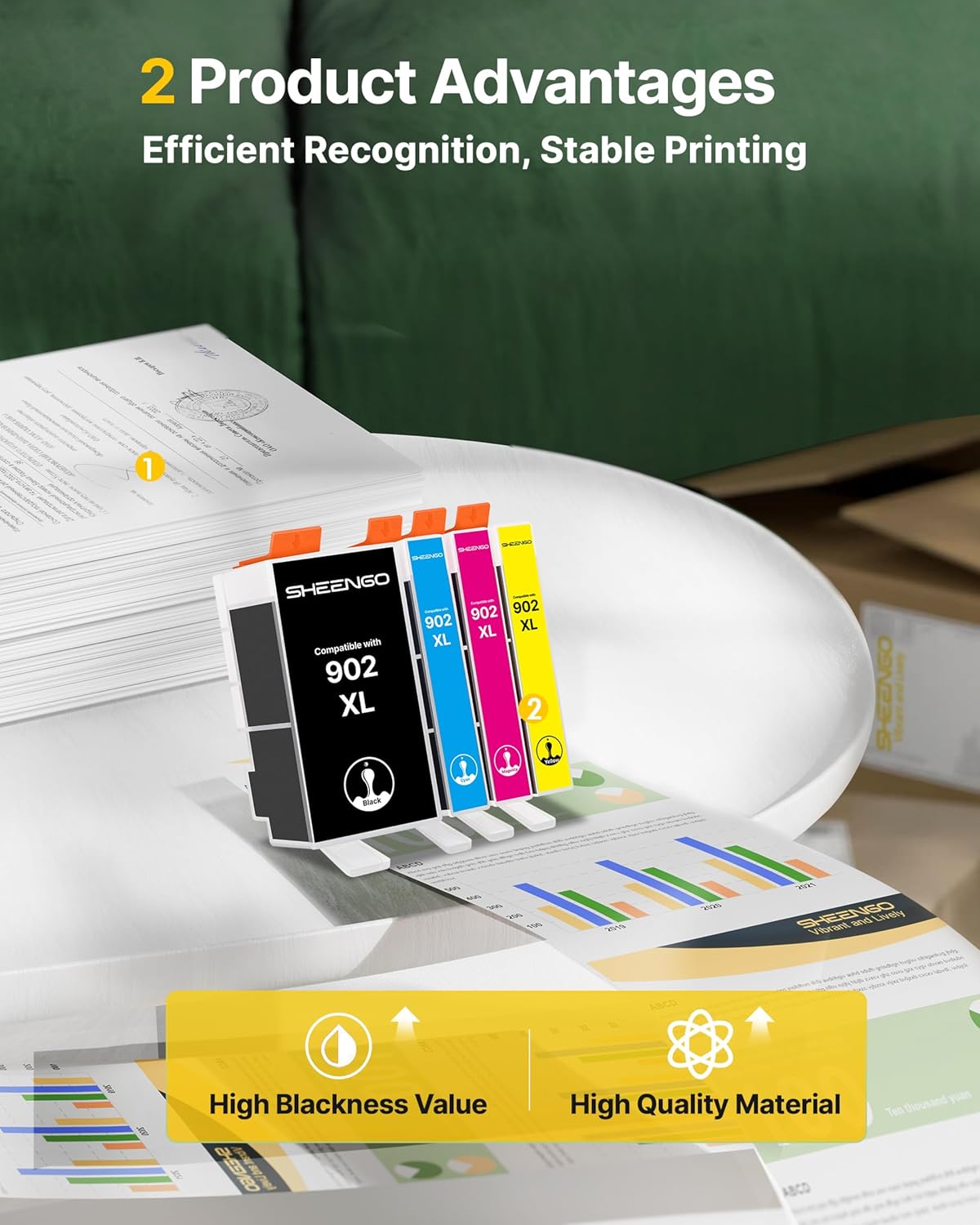 - SHEENGO 902 ink cartridges for HP printers is engineered to work with your printers to provide consistent quality, reliability and value