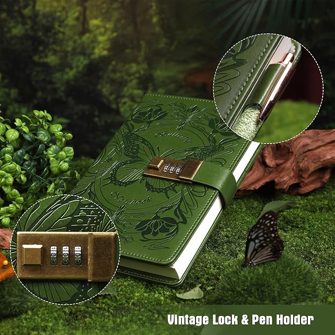 - Beautiful Butterfly Cover: TIEFOSSI butterfly journal for women girls is made of faux leather with a butterfly embossed design on the cover, reflecting the beauty and elegance, our lock notebook also comes with a pen and a beautiful butterfly bookmark for your convenience.