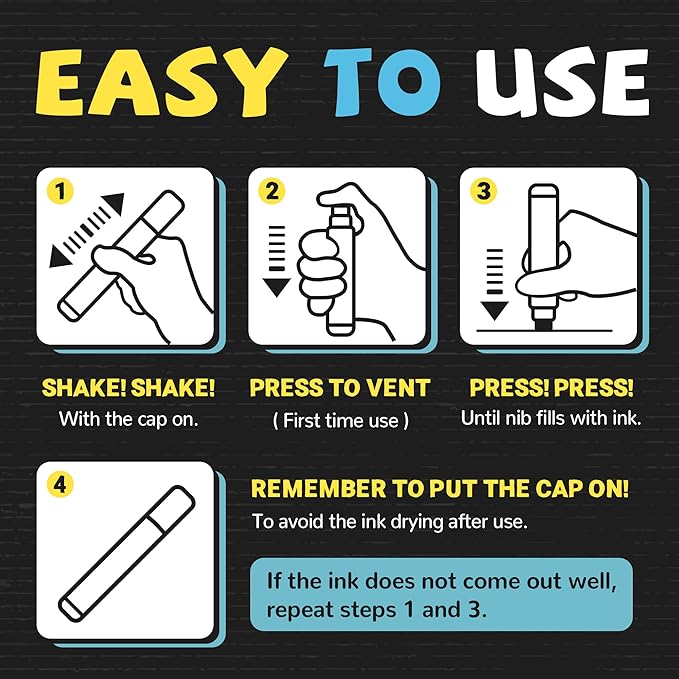- 20 Colors Jumbo Chalk Markers Set: SRUOLOC chalk markers for blackboard are made with the highest quality water-based liquid chalk ink. It is perfect for decorating car, window, any bistro boards, wedding signs, classroom blackboards, Christmas banners, etc.