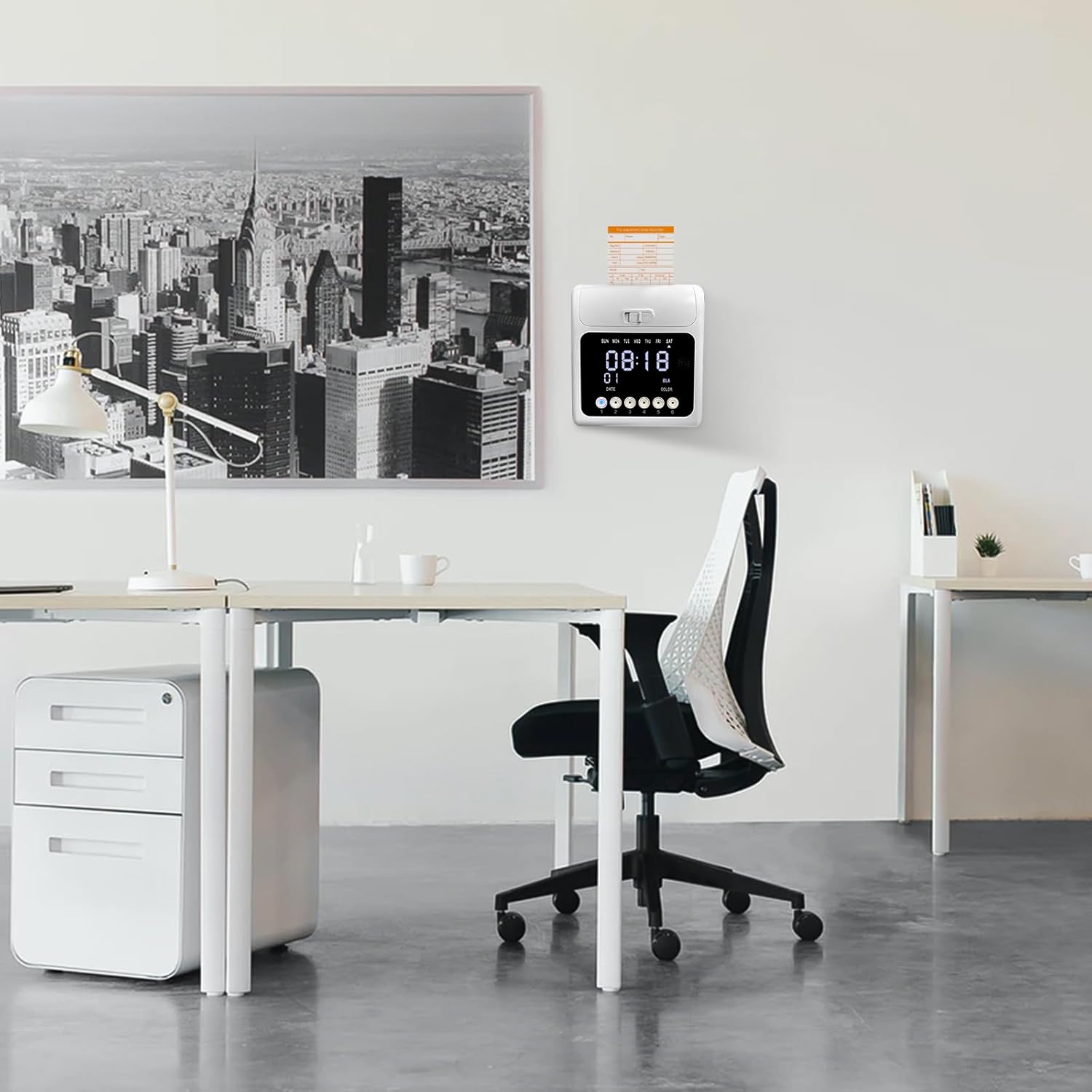 - ๐๐๐๐ผ ๐๐น๐ถ๐ด๐ป & ๐๐ฎ๐ฟ๐ฑ ๐๐ฒ๐ฒ๐ฑ๐ถ๐ป๐ด - The time clock punch machine automatically feeds the time card and identifies its front and back. If the card is not correctly inserted, it will be returned. ๐ก๐ผ๐๐ฒ: ๐๐ณ ๐๐ผ๐ ๐๐ฎ๐ป๐ ๐๐ผ ๐๐๐ฒ ๐๐ผ๐๐ฟ ๐ผ๐๐ป ๐๐ถ๐บ๐ฒ ๐ฐ๐ฎ๐ฟ๐ฑ๐, ๐ฝ๐น๐ฒ๐ฎ๐๐ฒ ๐๐๐ฟ๐ป ๐ผ๐ณ๐ณ ๐๐ต๐ฒ ๐ฎ๐๐๐ผ-๐ฎ๐น๐ถ๐ด๐ป ๐ณ๐๐ป๐ฐ๐๐ถ๐ผ๐ป.