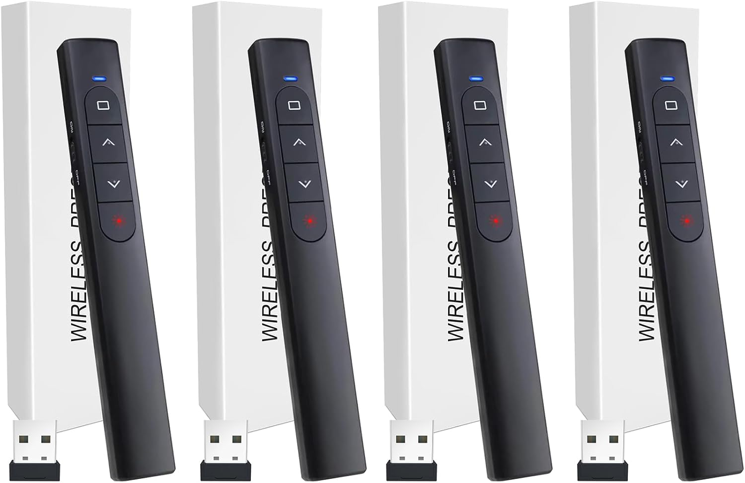 - [BRIGHT RED LIGHT] Wireless clicker for PowerPoint presentations, easy to see against most backgrounds, can be used to highlight key parts of a presentation