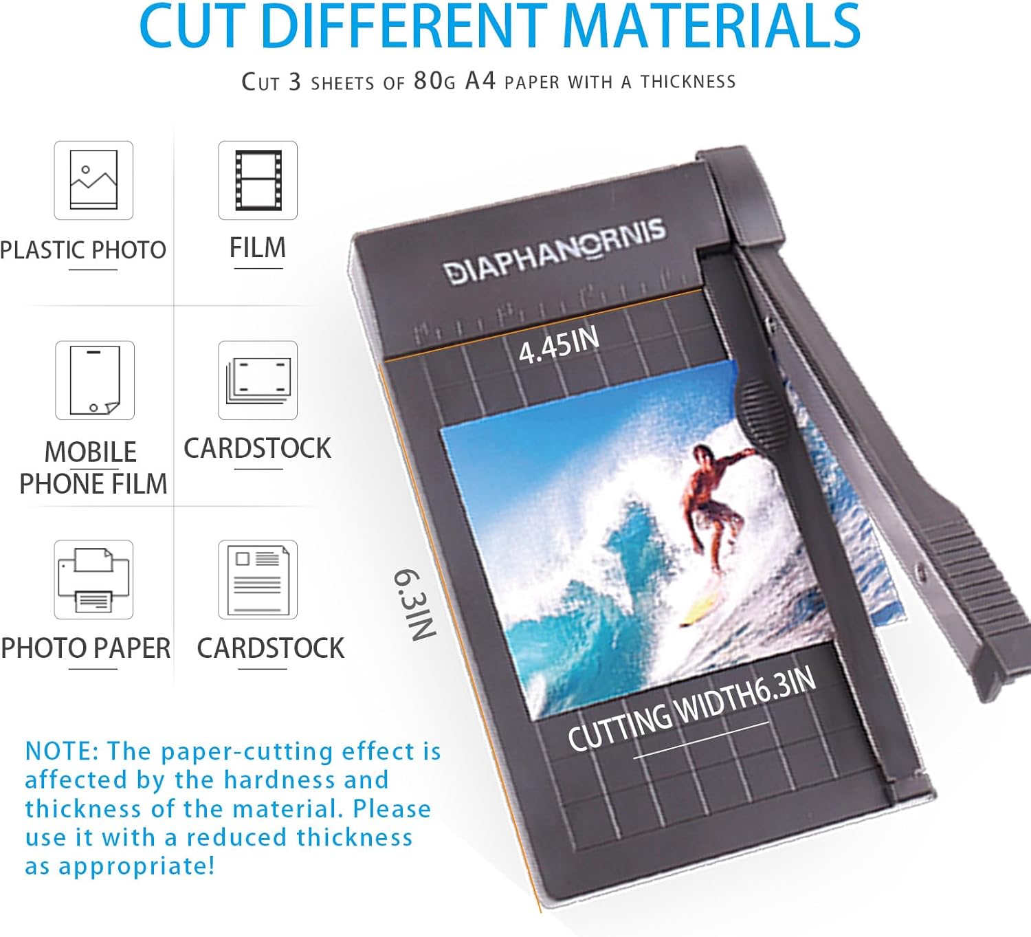 - Cutting Range: It can directly cut 3 sheets of A4 paper (80g thick) at one time without repeated operations, improving work efficiency. It is also suitable for various materials such as greeting cards, photos, and label paper.