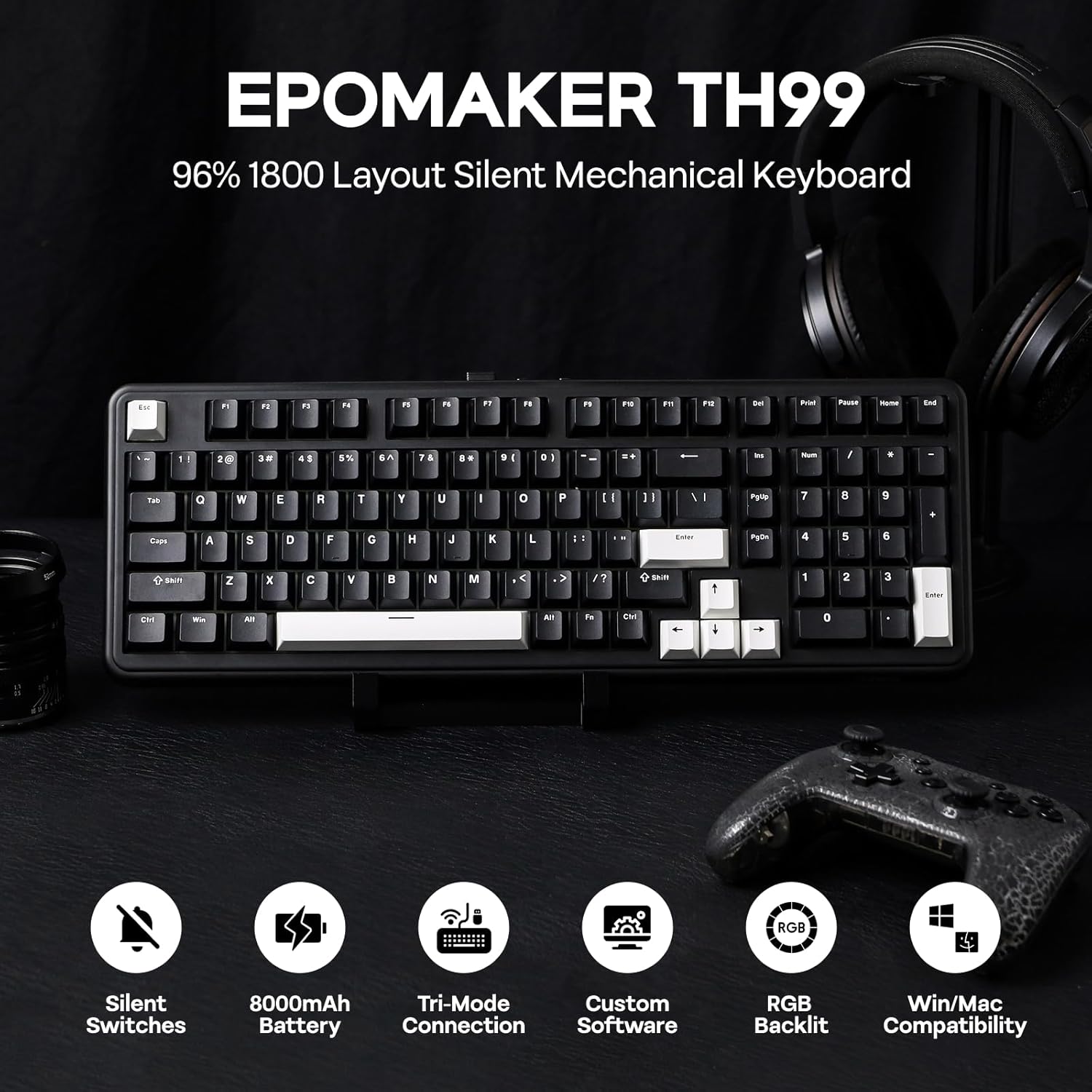 - Accessible Custom Keyboard in Sleek Modern Design: With upgrades in function, interior structure and exterior appearance, the EPOMAKER TH99 comes with Sea Salt Silent V2 Switch for super quiet typing. Enjoy the stable typing of TH99 with over 1 kilo in weight and 4 silicone pads, and take delight in the smooth buttering and satisfying feel of its keystroke granted by TH99βs flexible Gasket-Mount structure and 5 sound-dampening layers. Bask in the dynamic RGB backlight from 102 south-facing per-key LEDs, and indulge in the powerful software for programming and configuring on key mapping, macro setting and backlight customization.