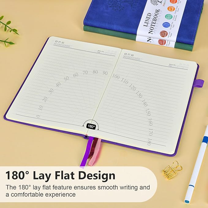 - 【180° LAY FLAT DESIGN & PREMIUM LINED PAPER】: Lay the notebook completely flat for easy writing in any setting—whether at your desk, in a café, or on the go. The 160 pages of 100 GSM lined paper (7mm spacing) offer a smooth writing experience, ideal for journals, work notes, school assignments, or Bible study notes, with minimal ink bleeding or feathering.