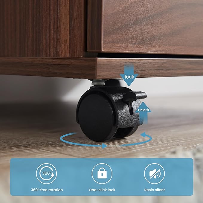 - Smooth-Rolling Casters for Mobility – Equipped with four durable casters (two lockable) for easy movement and stability, allowing you to reposition the cabinet effortlessly as needed.