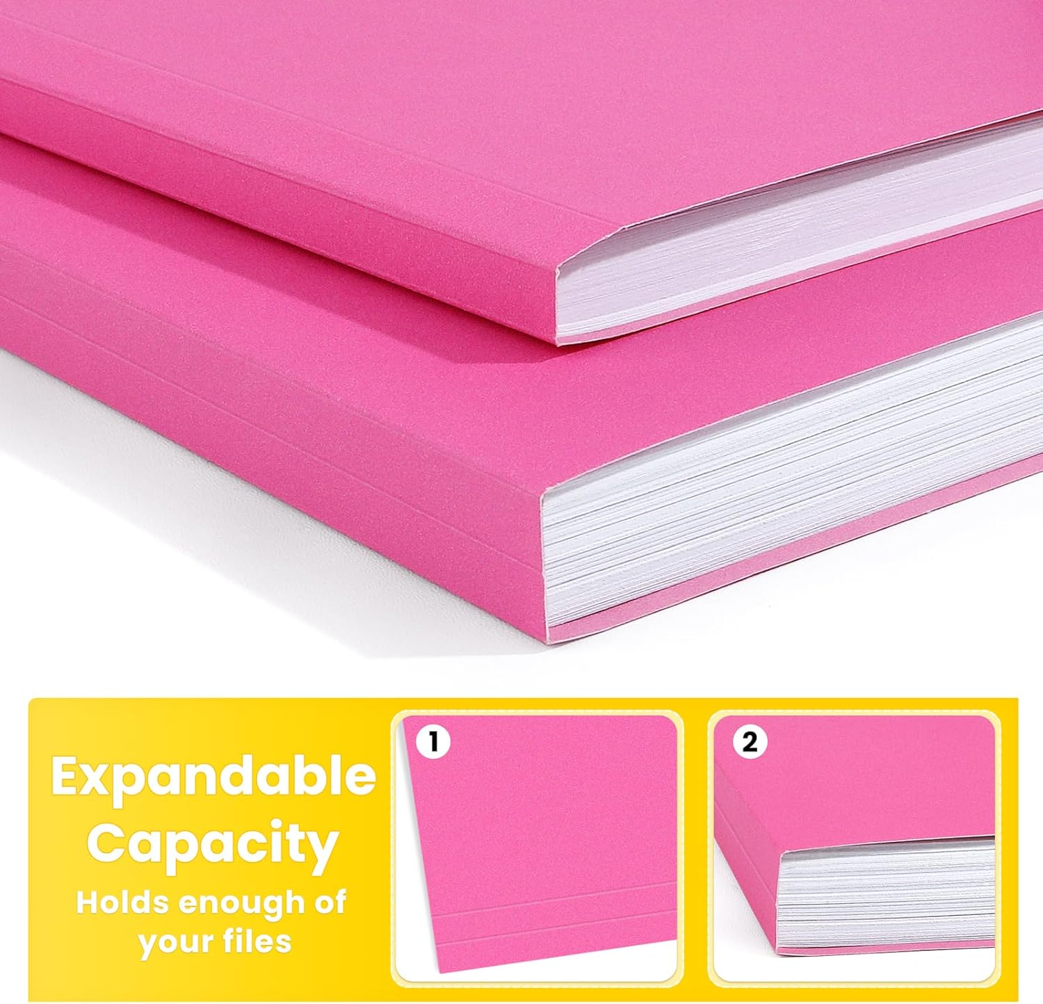 SUNEE File Folders, 100 Pack Manilla Folders 8.5 x 11, Colored File Folders Home Office School Supplies for Documents Files Paper, Neon Pink