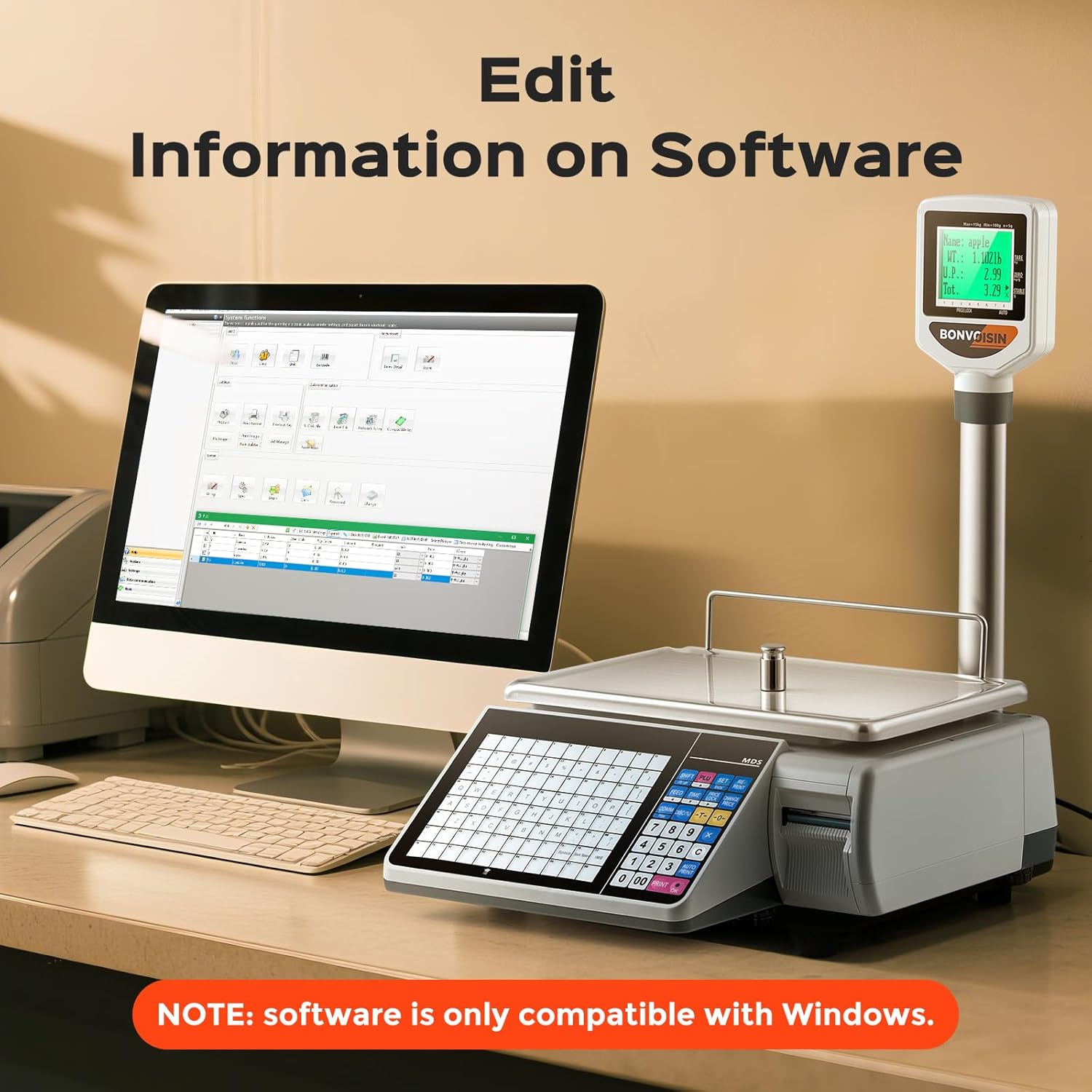 - 88 Shortcut Keys - The label printing scale can store up to 6000 commodity PLU information. PLU information can be edited on the computer software. Note: software is only compatible with Windows.