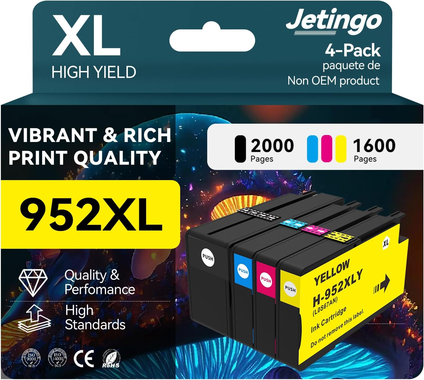 - Package Content:1x 952XL black ink cartridge, 1 x 952XL cyan ink cartridge, 1 x 952XL Magenta ink cartridge, 1 x 952XL Yellow ink cartridge