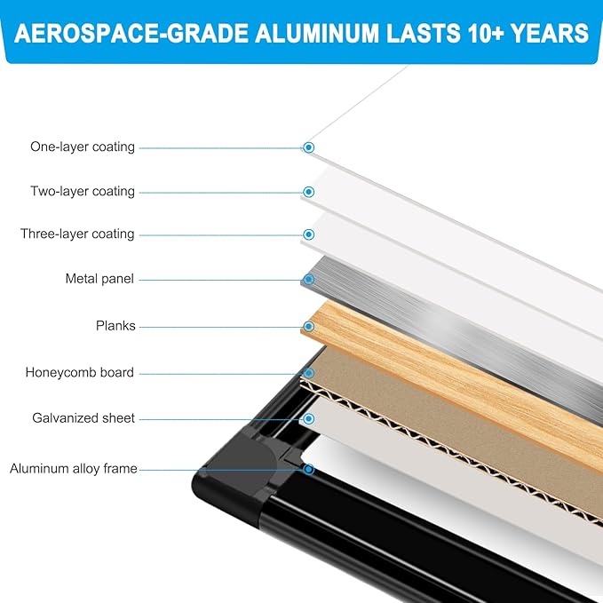 - ✔ Premium Durability – Unlike flimsy cardboard-core whiteboards, our sturdy wooden core resists warping, dents, and creases for long-lasting use. Black aluminum frame with ABS corner guards prevents dings.