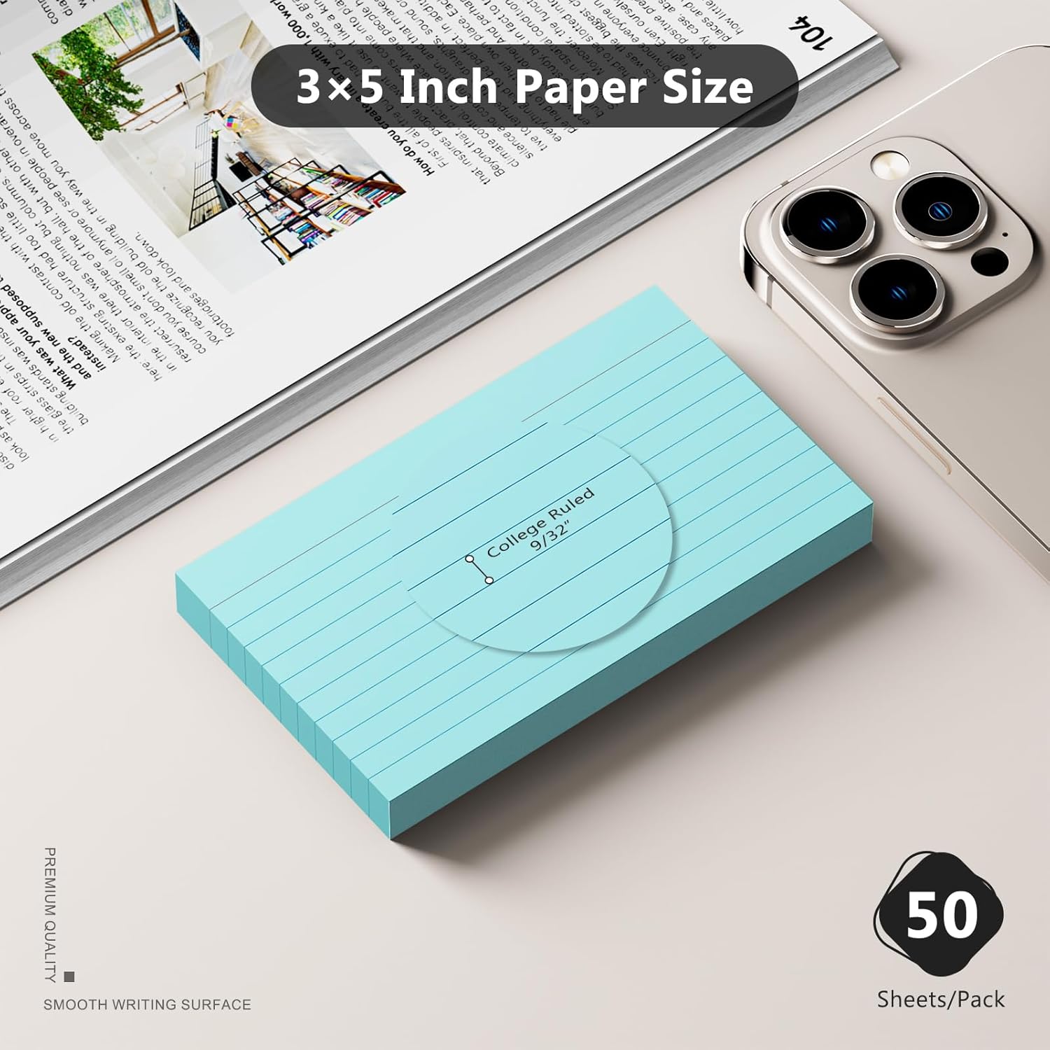 250 Count Index Cards 3 x 5 Inch, Heavyweight Blue Lined Note Cards Portable Ruled Flash Cards Perfect for Studying and Organizing, Note Taking Study Flashcards for Home, School and Office
