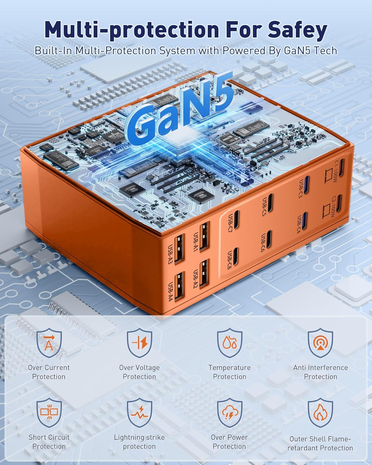 - γ12-in-1 USB C Charging StationγThis 600W USB C Charger Block comes with 8 USB C ports and 4 USB A ports to charge multiple devices, simplify your charging setup, and let you experience the convenience of ultra-fast and ultra-high output charging. With its smart charging technology, it can automatically detect and provide the best power output for each connected device, ensuring fast and efficient charging.