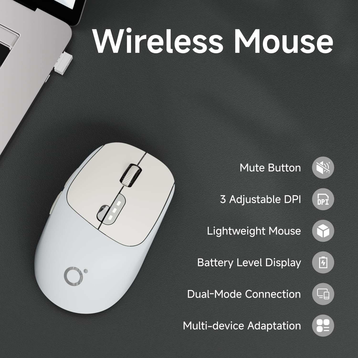 EWEADN Q5 Wireless Mouse, Bluetooth & 2.4G Quiet Computer Mouses with 1600 DPI, Battery Level Display, Ergonomic Office Mouse,6 Button Portable Cute Cordless Mice for Laptop/PC/Mac- Grey