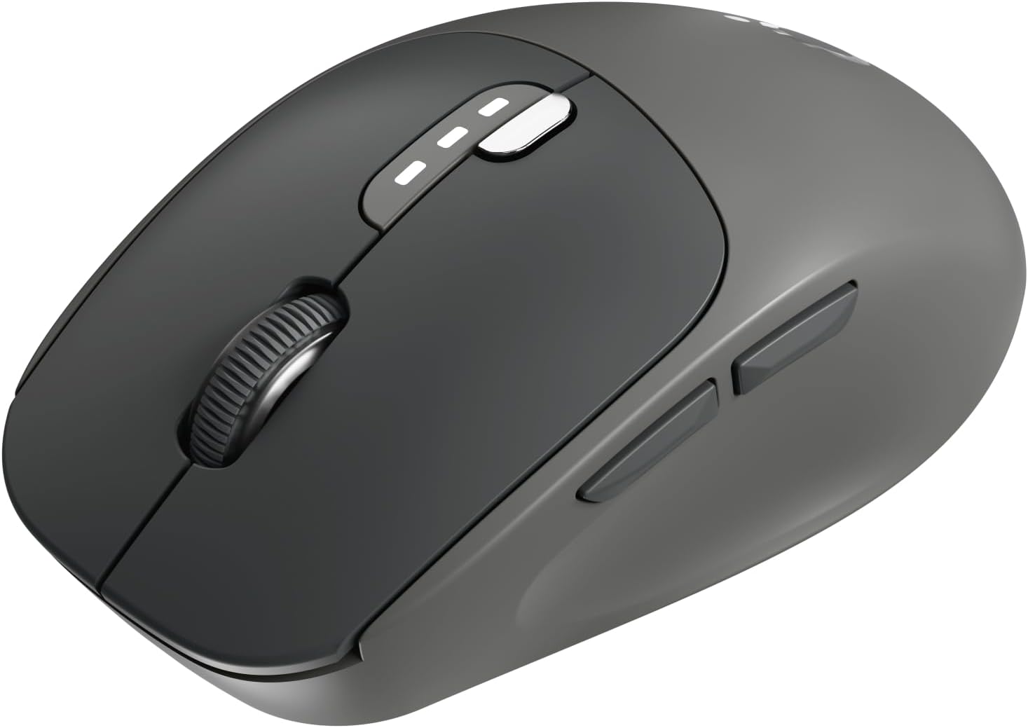 - Dual Connection: Connect two devices simultaneously using either Bluetooth/2.4G connection for a wireless mouse experience. Seamlessly switch between the connected devices with a simple slide of the switch button.
