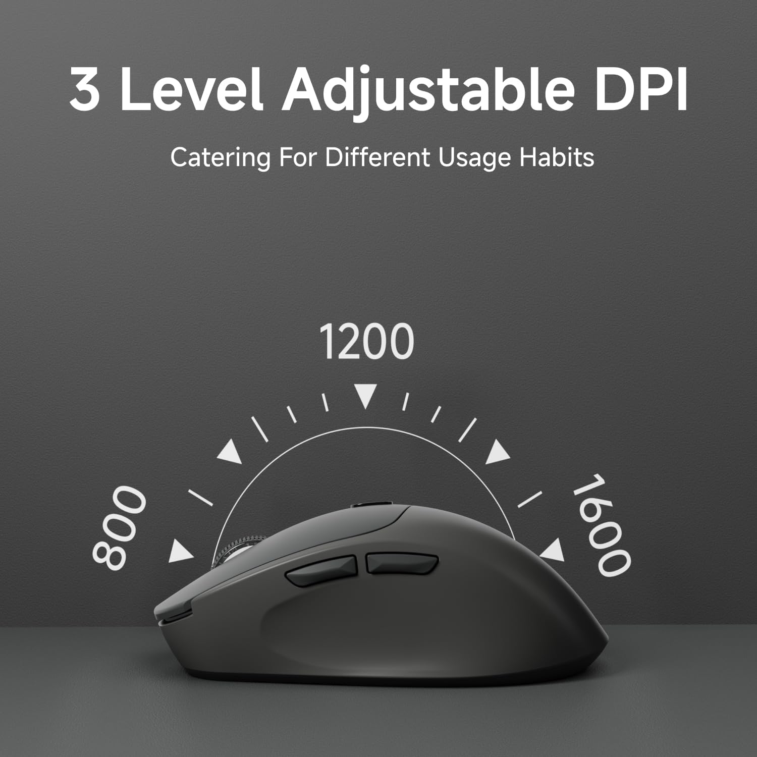 - 3 Levels Adjustable DPI & 6 Buttons: 3 Adjustable DPI Settings, 800, 1200, and 1600. This computer mouse gives precision tracking on just about any surface, with a DPI button helping to change the sensitivity on the fly. The extra 2 Side Buttons are ideal for both work and gaming.