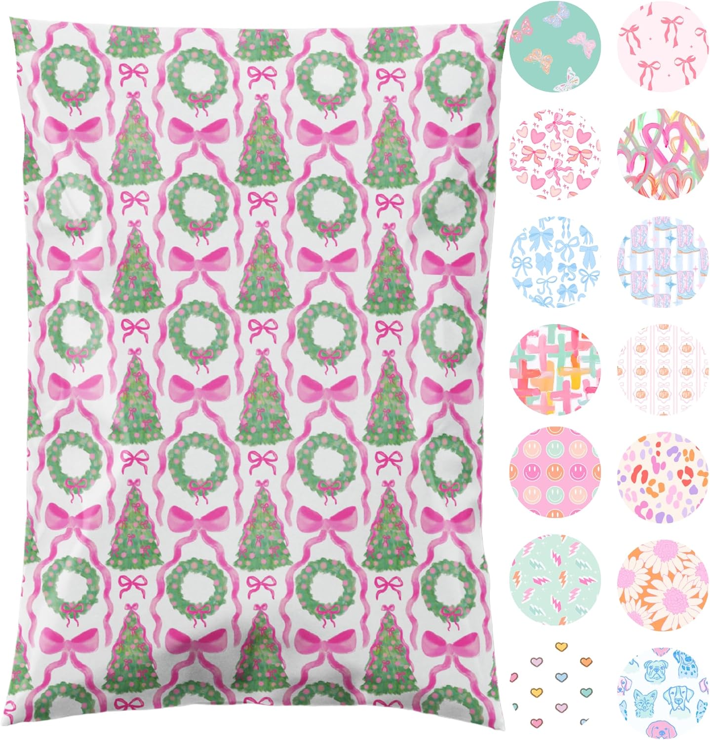 14.5x19 Designer Poly Mailer 100 Pack Heavy Duty Waterproof Self Seal Shipping Bags for Small Business Large Mailing Envelopes Bulk Tear Resistant Packaging Coquette Christmas Holiday Bows