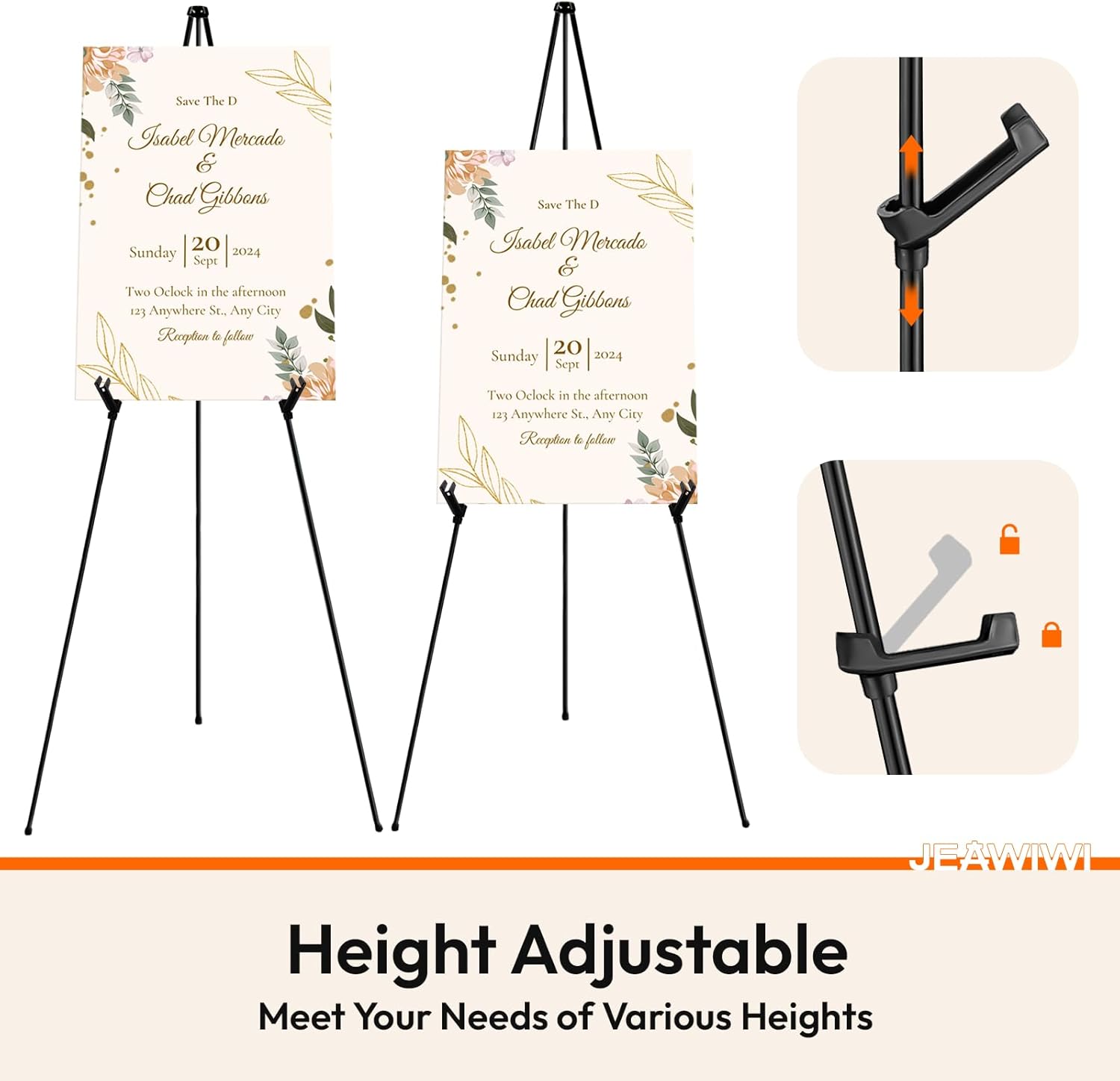 - 【EASY TO USE 】 Our sign easel stand is designed with components such as spring-loaded joints and elastic internal cords, allowing it to be assembled in a fraction of the time. And no tools are required