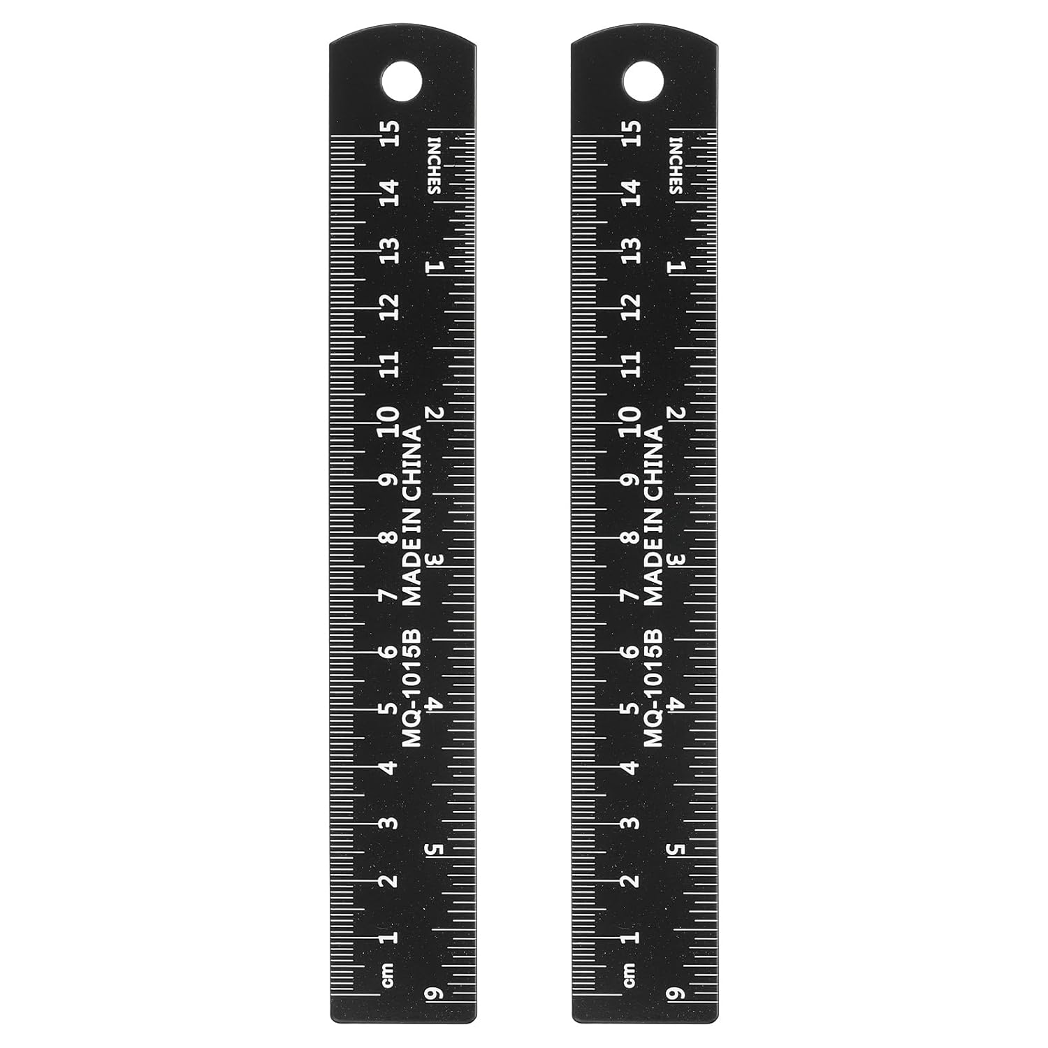 HARFINGTON 2pcs Metal Straight Ruler 15cm Metric SAE Aluminum Alloy Measuring Rulers Scale Tool with Hole for Measure Study Reading Classroom Office, Black
