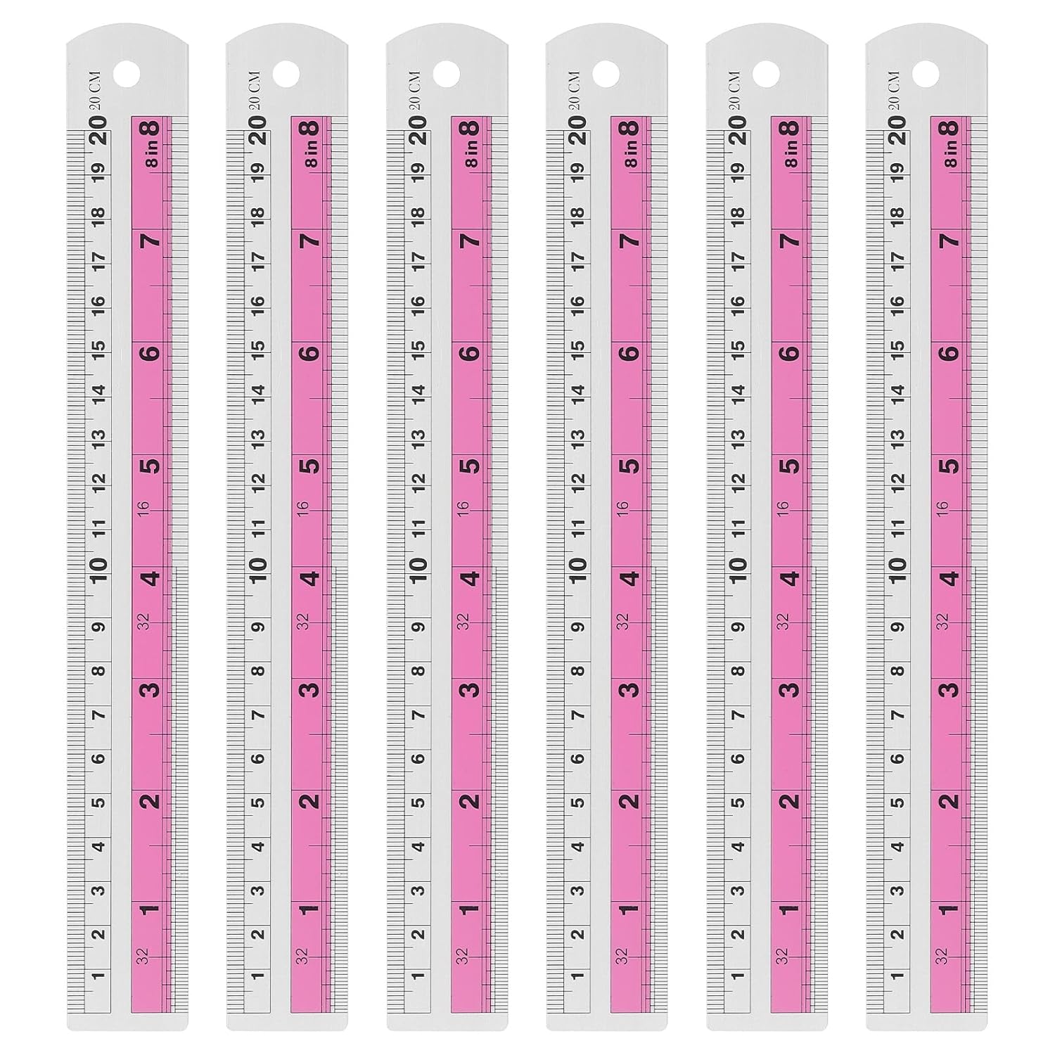 HARFINGTON 6pcs Metal Straight Ruler 20cm Metric SAE Aluminum Alloy Measuring Rulers Scale Tools with Hole for Measure Study Reading Classroom Office, Pink