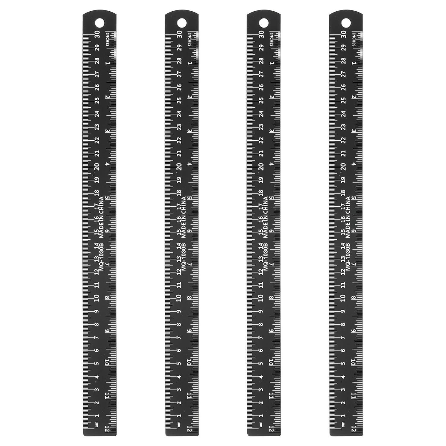 HARFINGTON 4pcs Metal Straight Ruler 30cm Metric SAE Aluminum Alloy Measuring Rulers Scale Tool with Hole for Measure Study Reading Classroom Office, Black