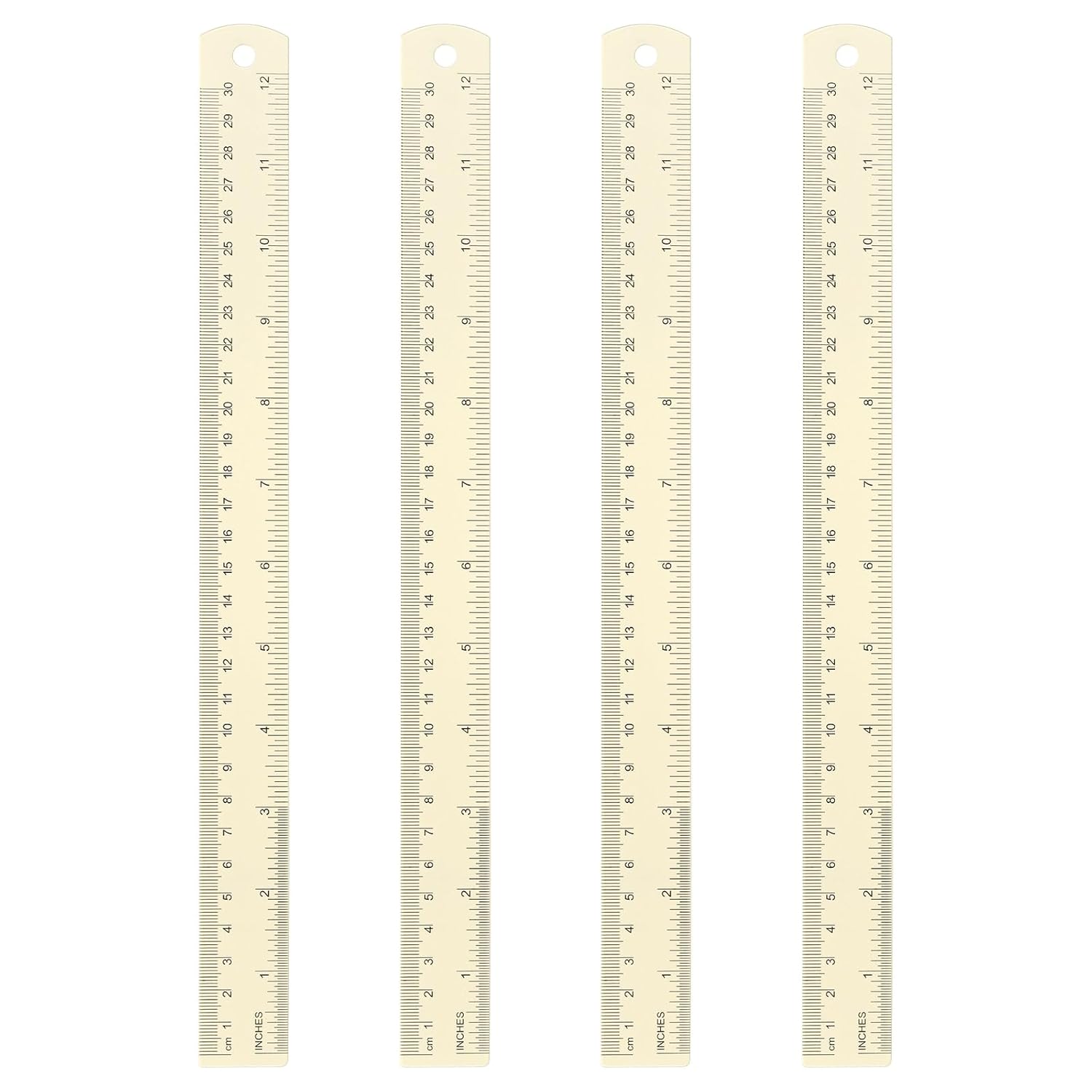 HARFINGTON 4pcs Metal Straight Ruler 30cm Metric SAE Aluminum Alloy Measuring Rulers Scale Tool with Hole for Measure Study Reading Classroom Office, White