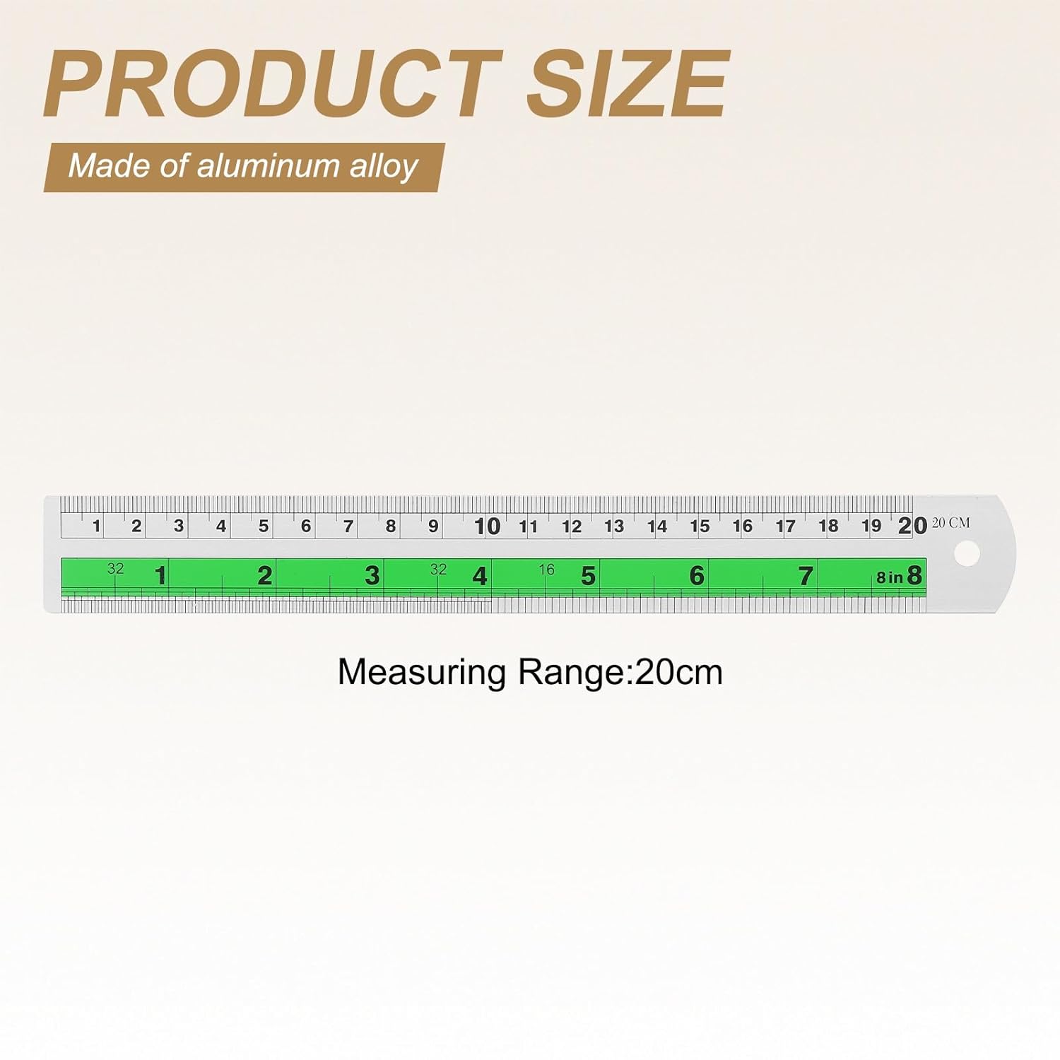 HARFINGTON 2pcs Metal Straight Ruler 20cm Metric SAE Aluminum Alloy Measuring Rulers Scale Tool with Hole for Measure Study Reading Classroom Office, Green