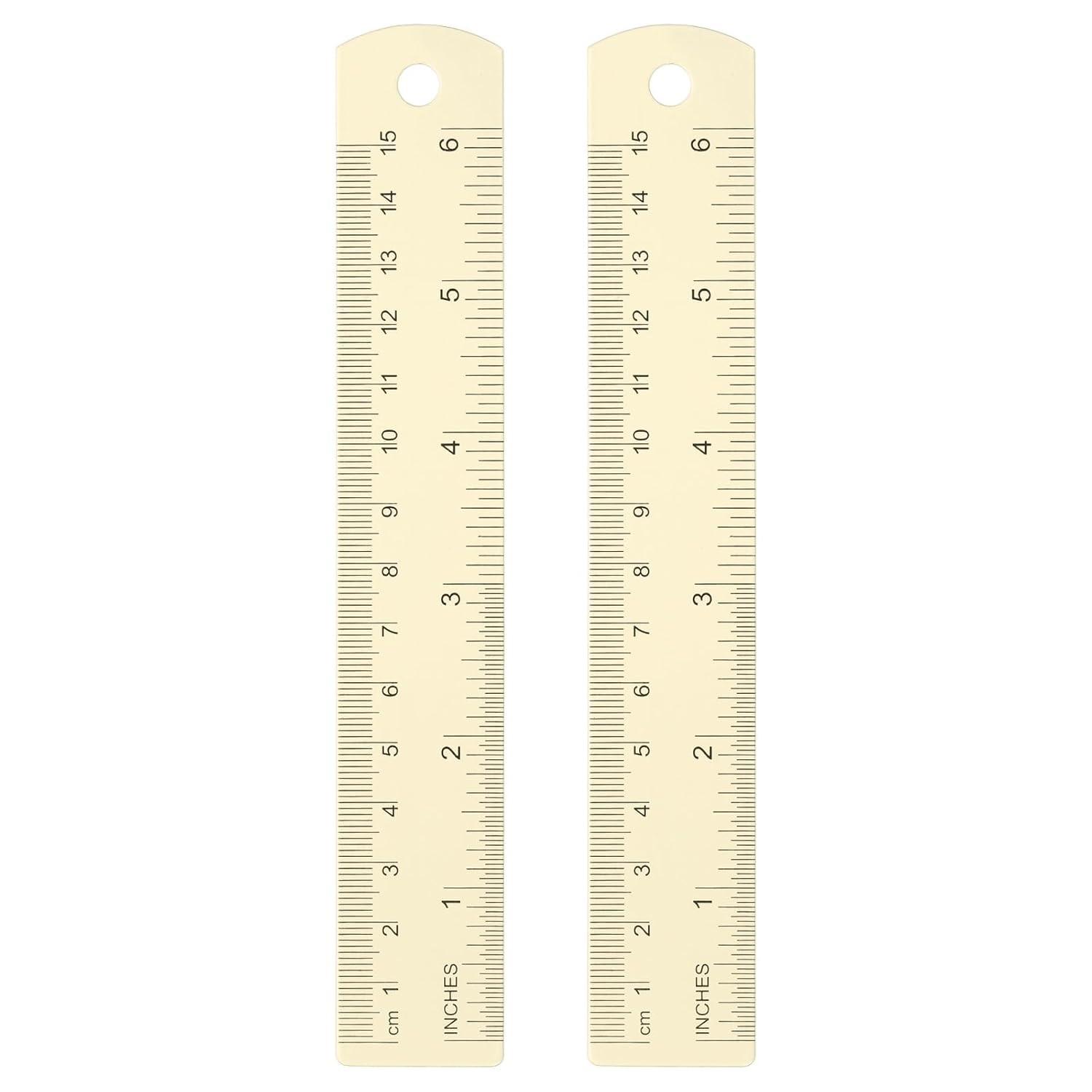 HARFINGTON 2pcs Metal Straight Ruler 15cm Metric SAE Aluminum Alloy Measuring Rulers Scale Tool with Hole for Measure Study Reading Classroom Office, White